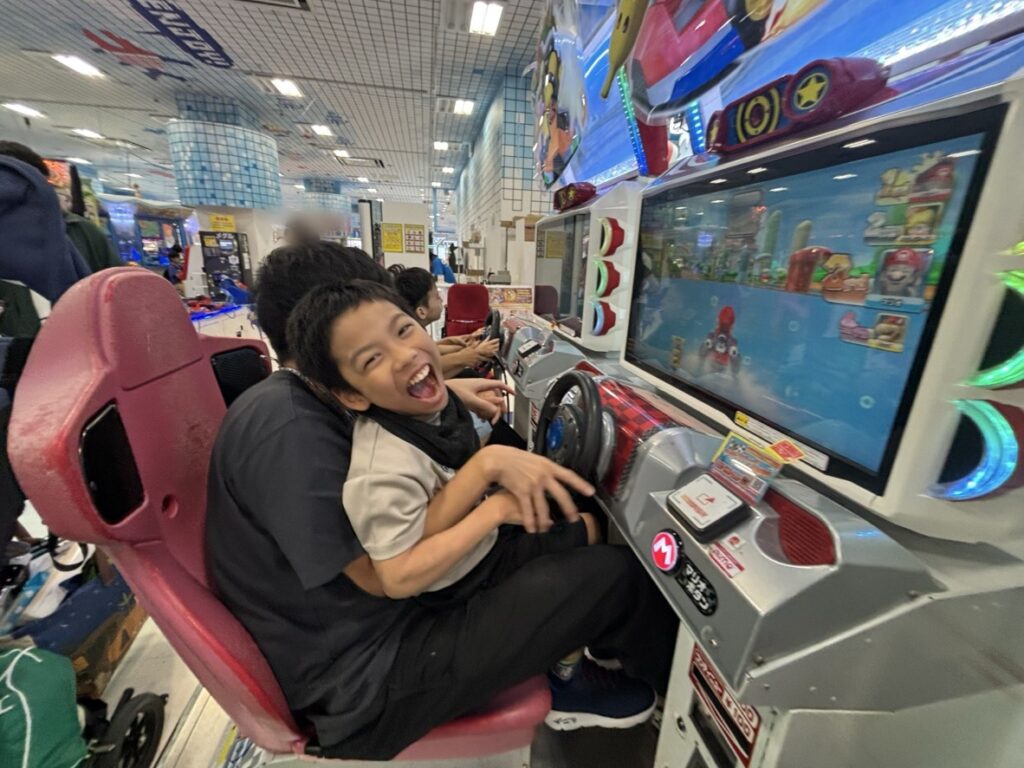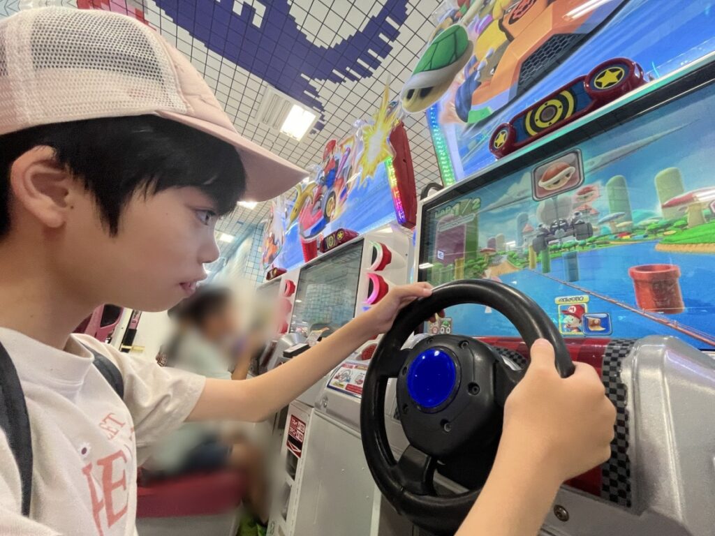 それぞれおこづかいを持ってきたので、ゲームやガチャガチャ、マリオカートに挑戦!