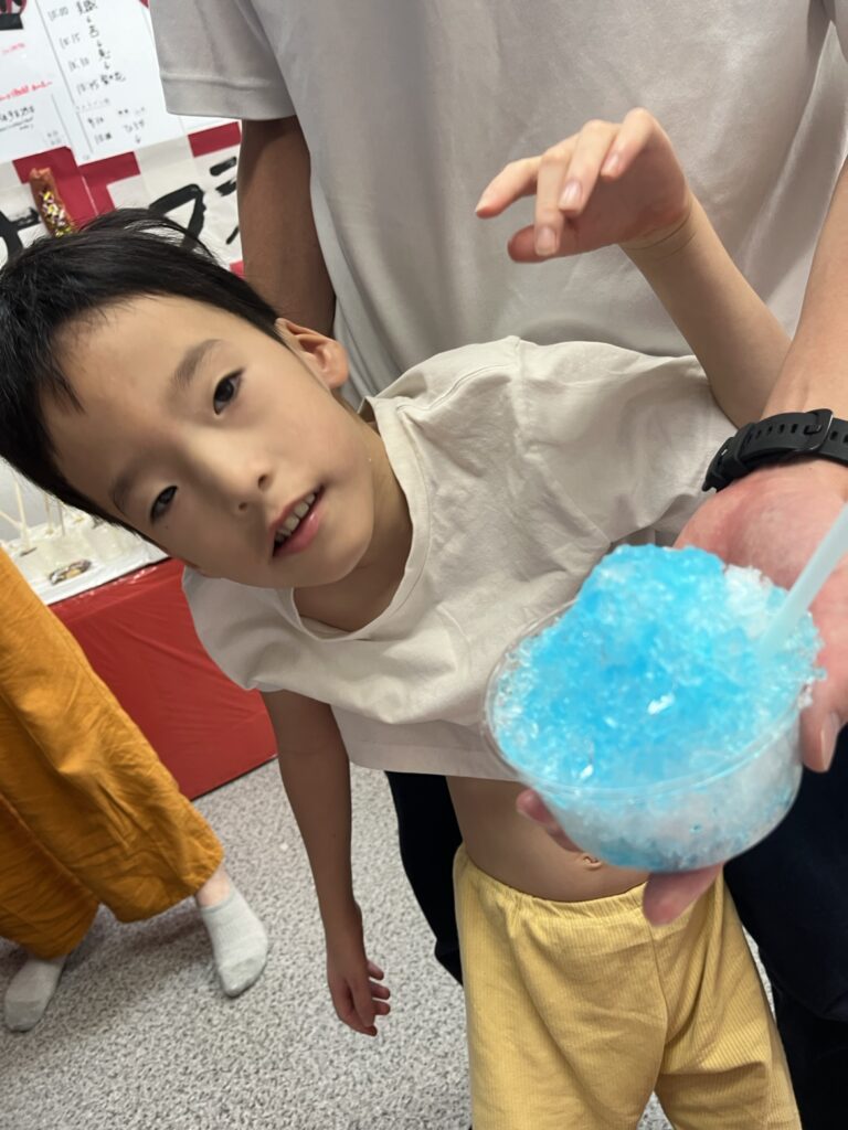 お母さんやお父さんとヨーヨー釣りに挑戦したり…、初めてのかき氷を味わったり💛