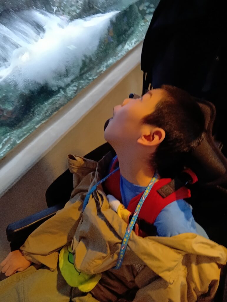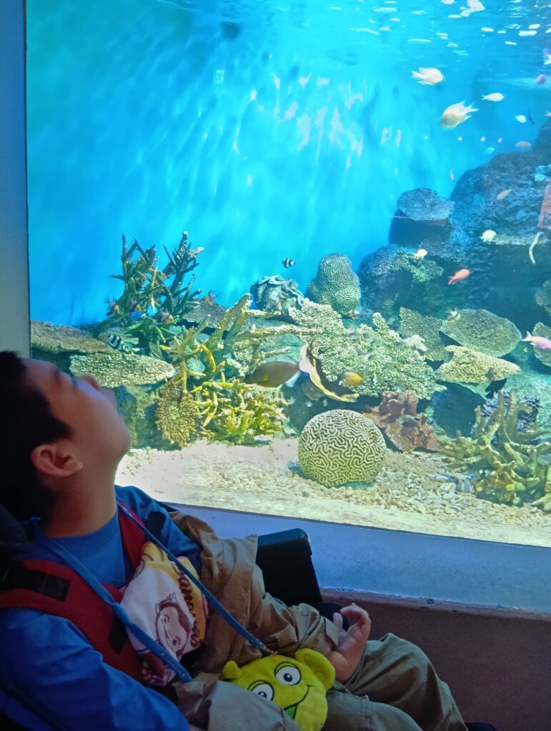 カラフルなサンゴ礁の水槽に二人ともご満悦☺️ドリーがいたね🐟🐠🐡