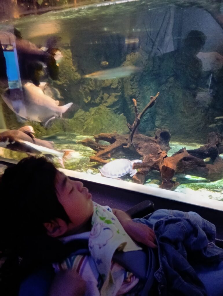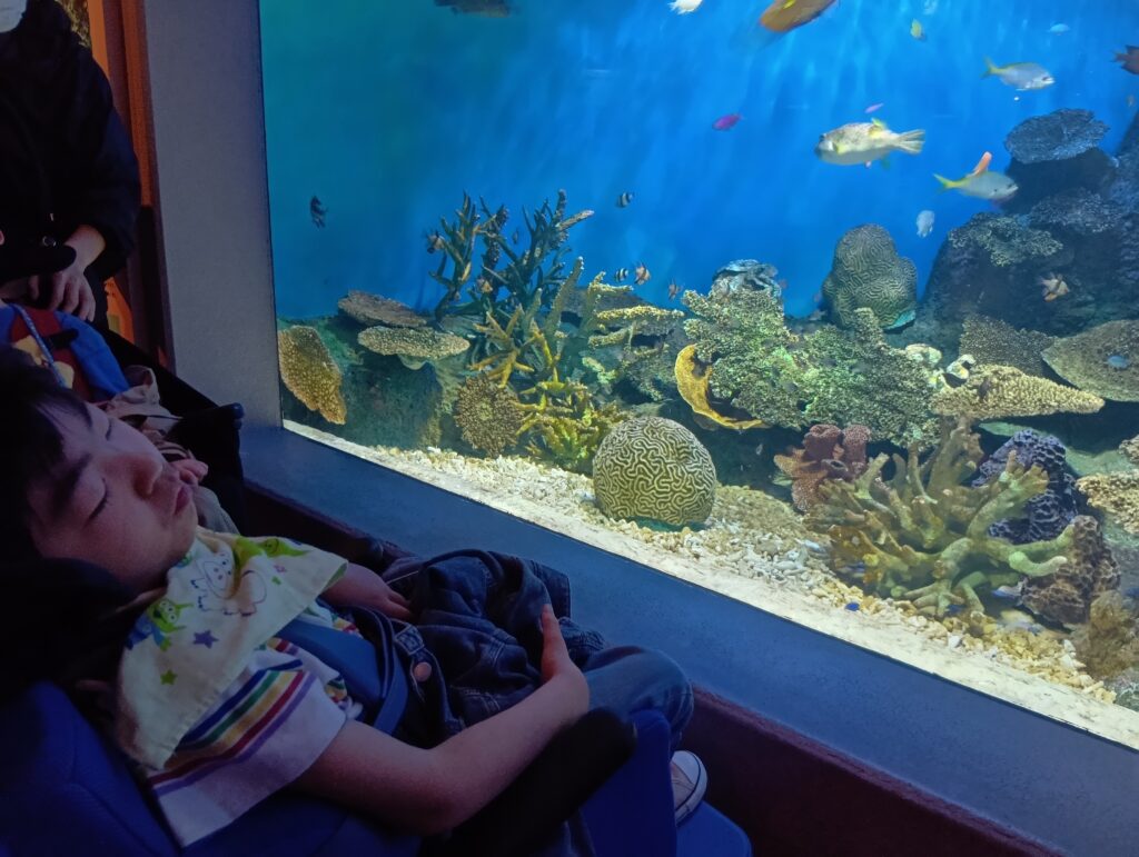 いろんな海の生き物がいて楽しいけど、暗くて眠くなってきちゃったかな?