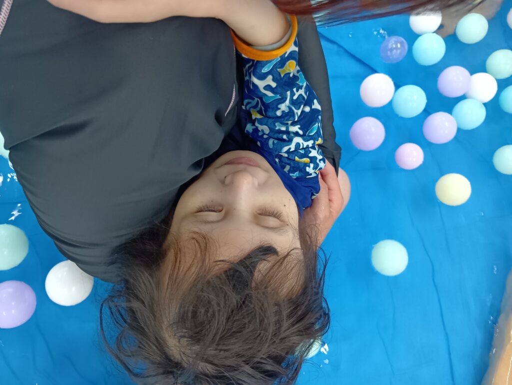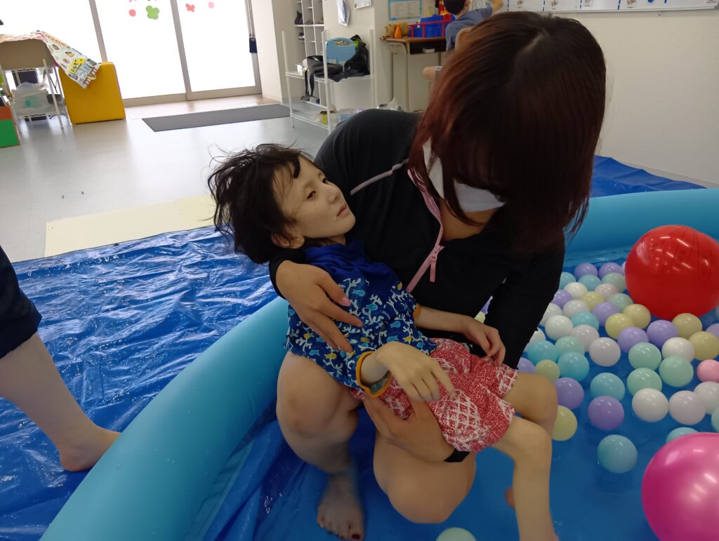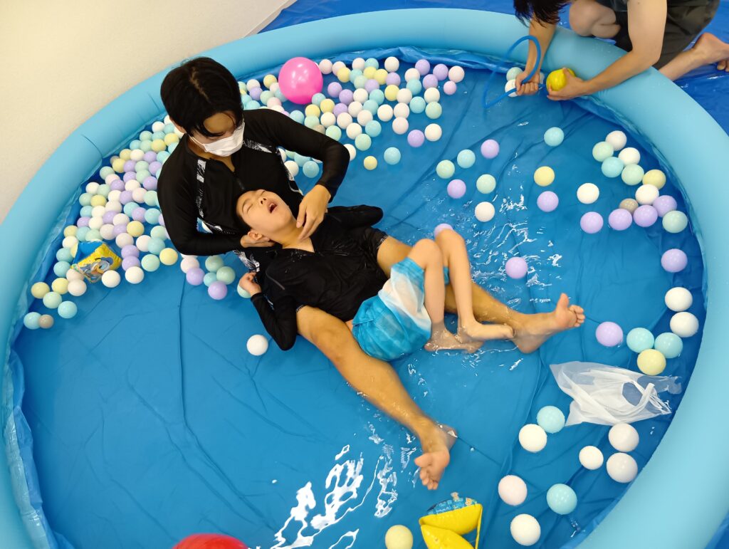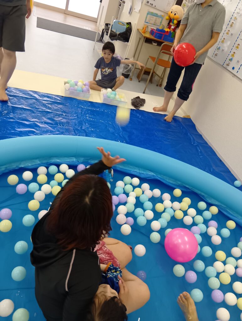 また、プールの外からカラーボールを投げ入れる新しい遊びも開発してくれましたよ🤭