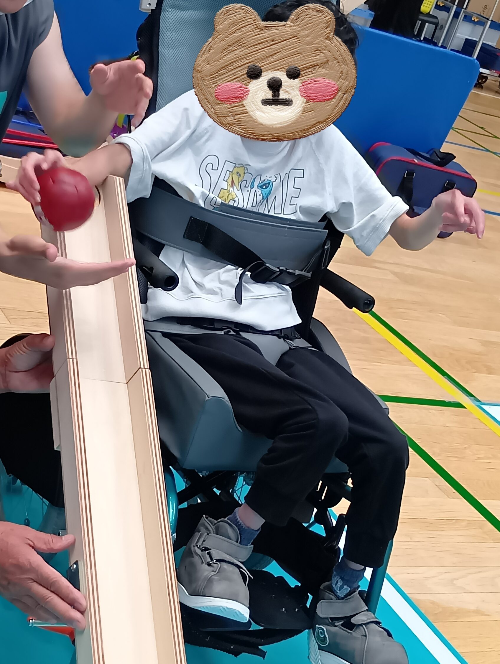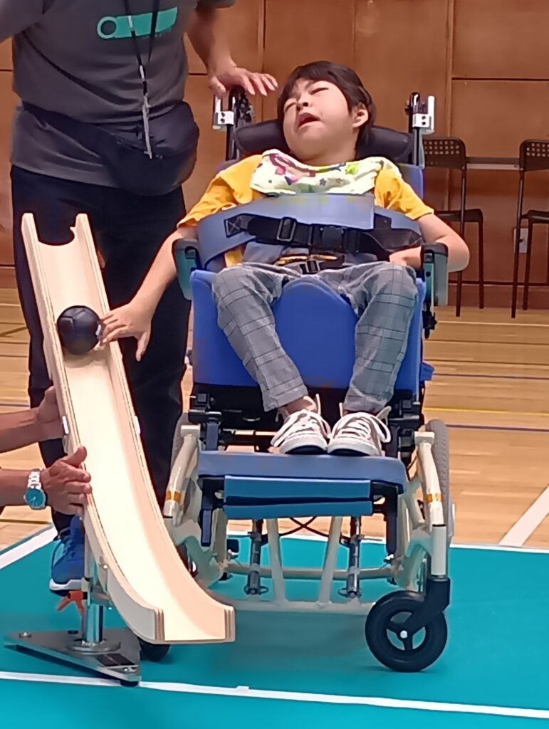 未就学のため今回は見学だったお子様も、実際にボッチャボールを触らせてもらい、楽しみました🤾♀️