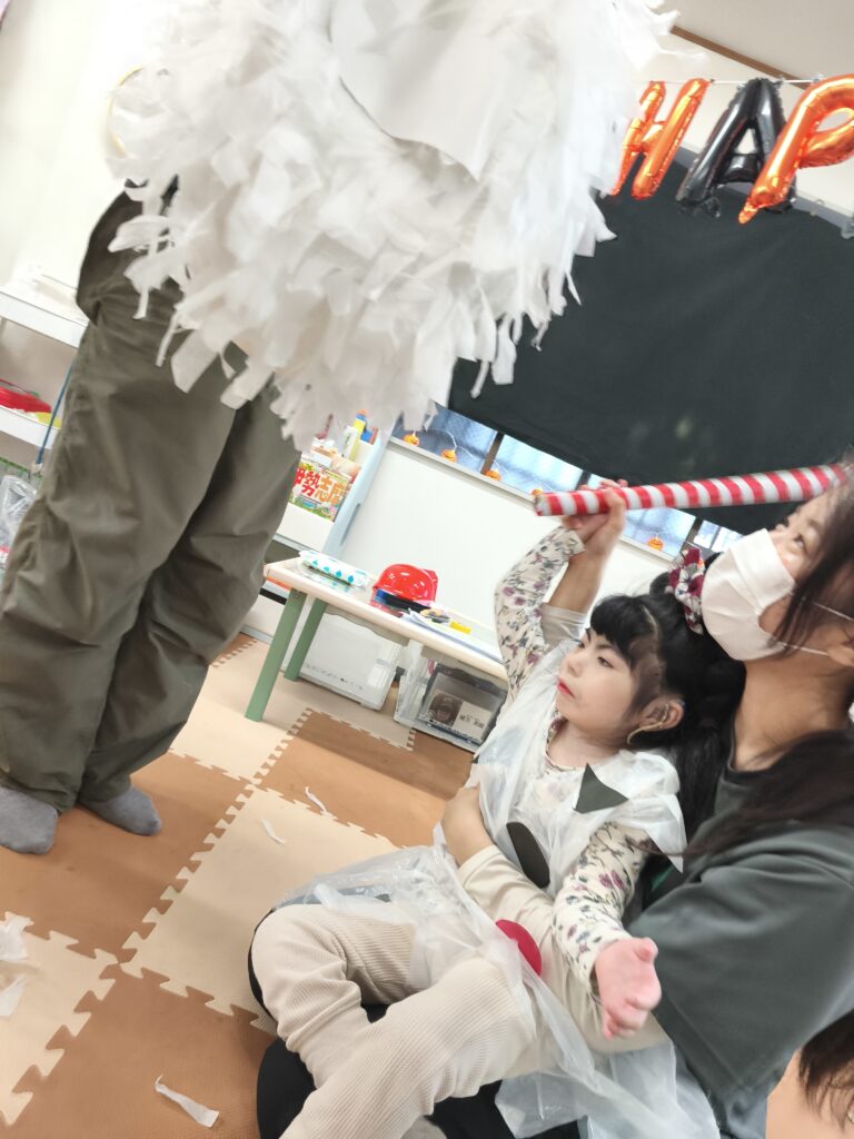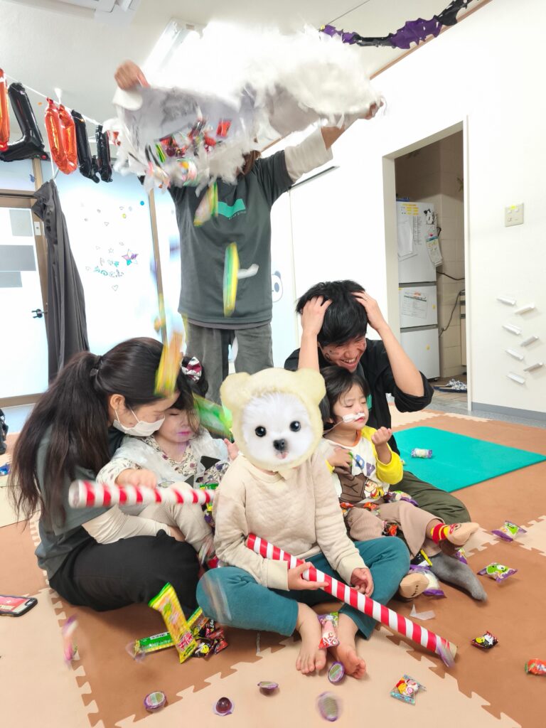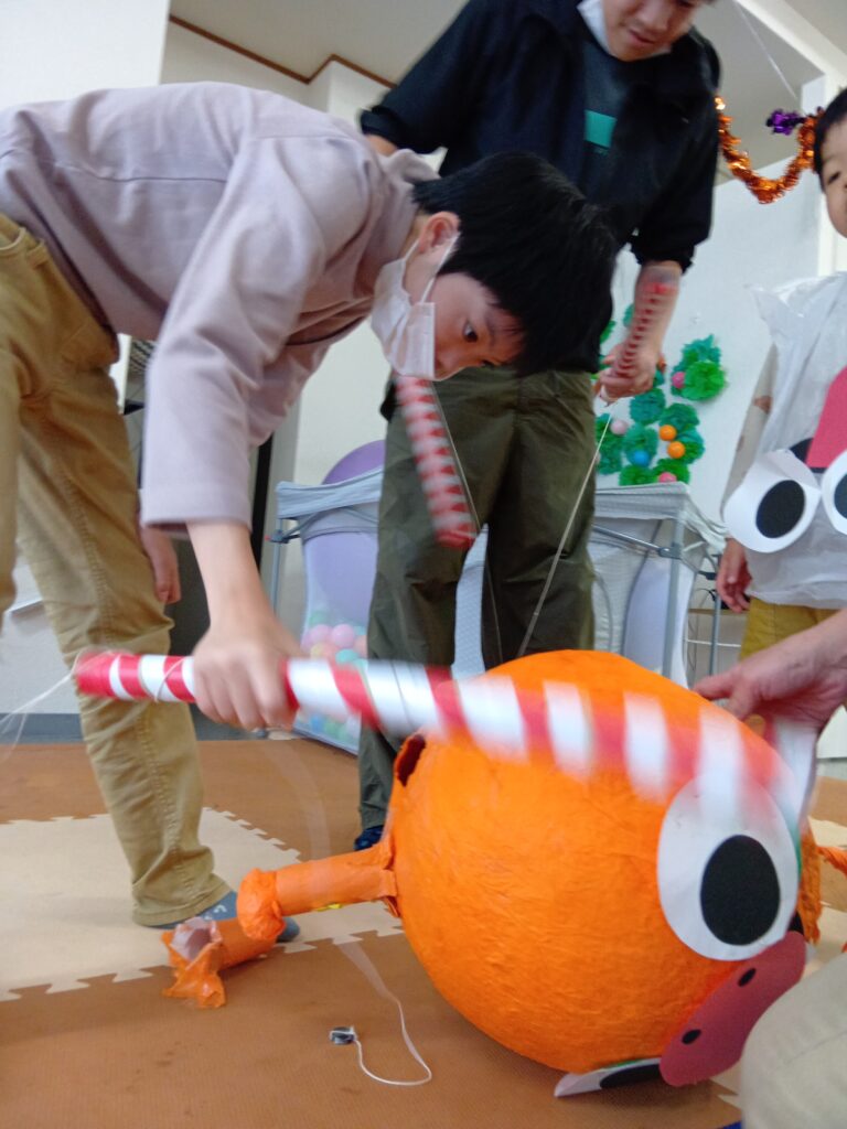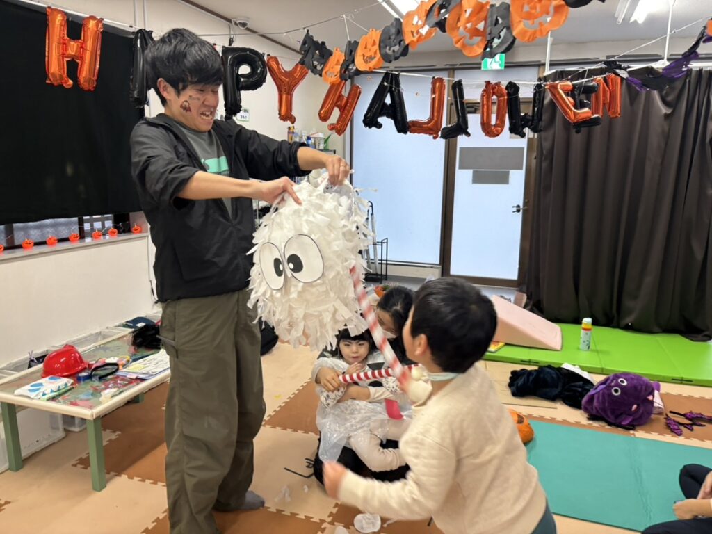 当日お休みのお友達も別の日にお菓子を選んだりピニャータを叩いて楽しんだりと、みんなの笑顔と笑い溢れるハロウィンになりました🎃