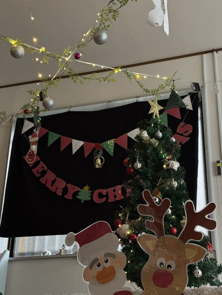 今年ももうすぐ終わってしまいますね😣皆様はどんな1年を過ごされましたか? 1年を締めくくる大きなイベント🌟といえば・・・ それは『クリスマス🎄✨』お出かけでイルミネーションを見に行ったり、プレゼント交換したり、ケーキを作ったり、お部屋もみんなの制作を飾りクリスマス仕様にして、12月中はずっとクリスマスを楽しみました✨そんなクリスマスの様子をお伝えします!!