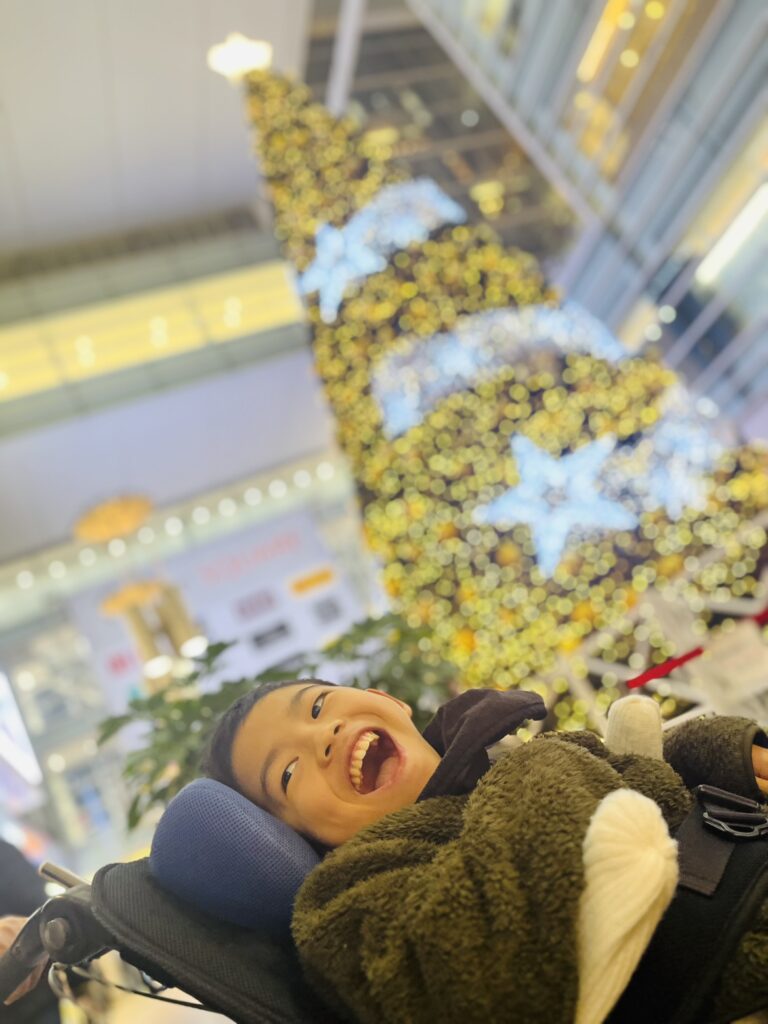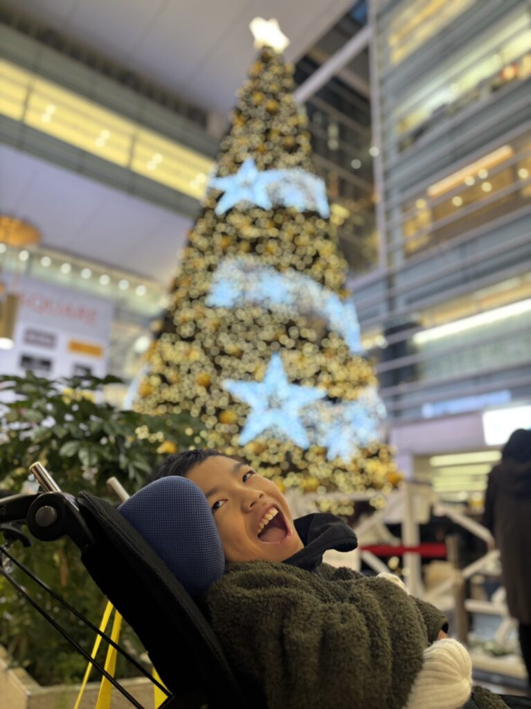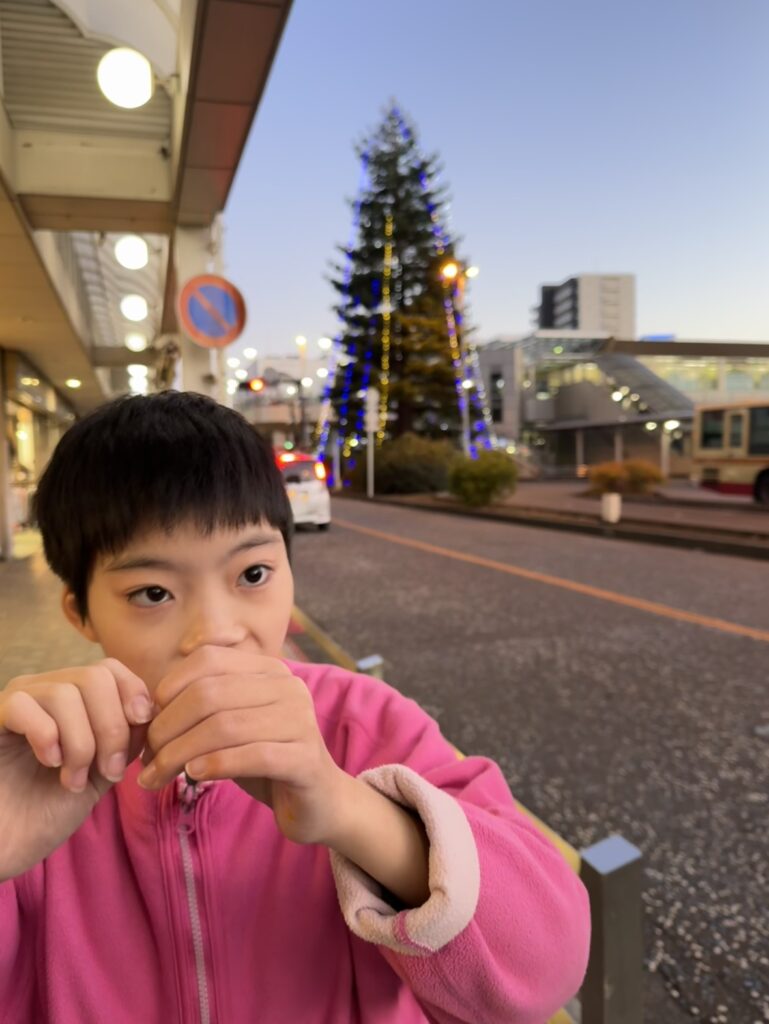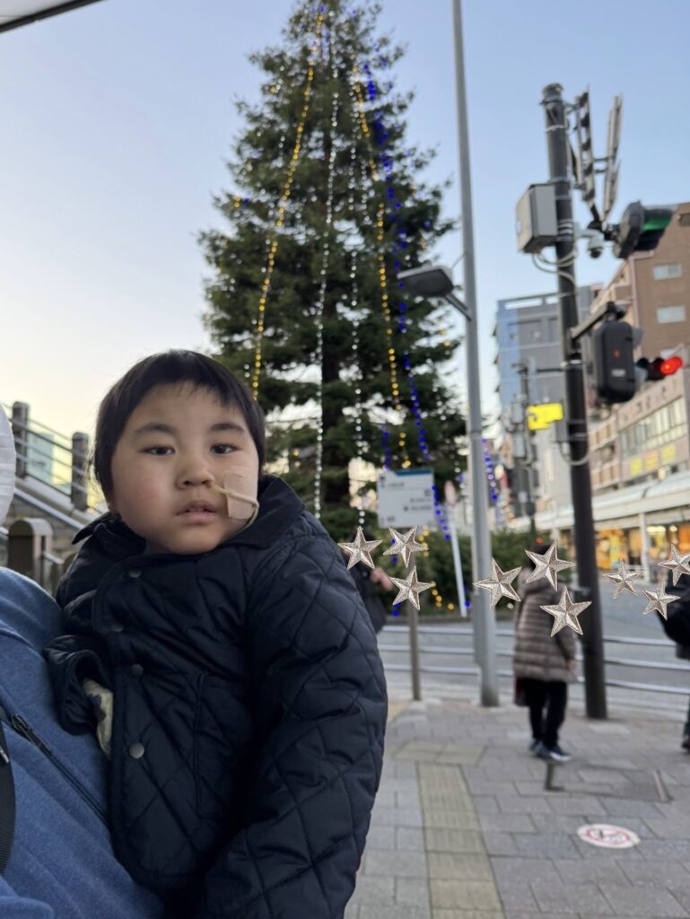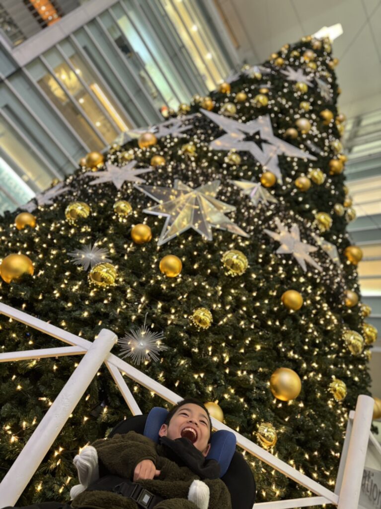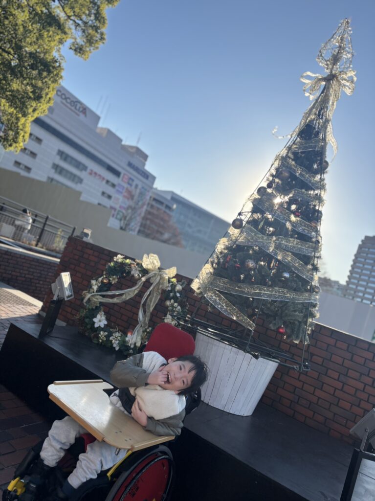 淵野辺駅にも大きなツリーが🎄✨ お散歩の時間はまだ光も控えめですが、子供たちは「お~!!きれ~🤩」「キラキラしてる☆彡」と目を輝かせていました👀