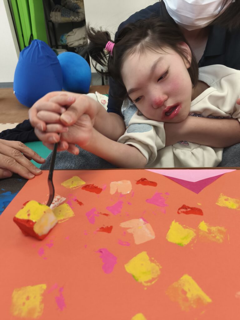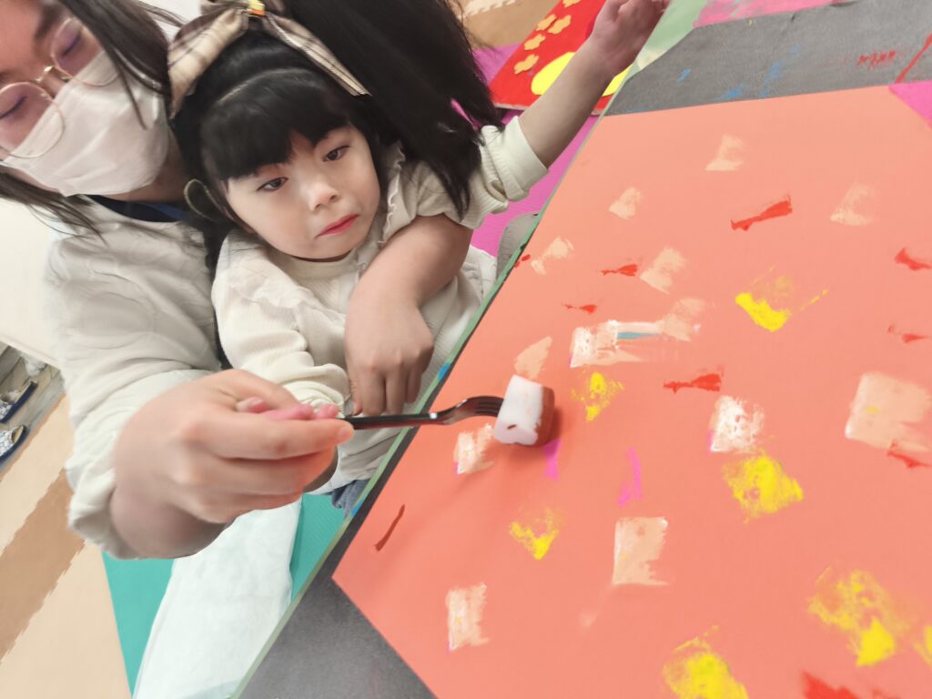 絵の具を付けて、画用紙にペタペタペタッ!!!!