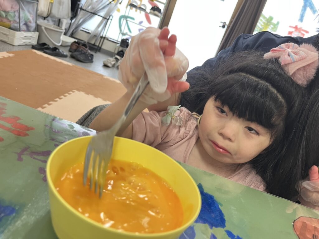 まずは卵をまぜまぜ♪