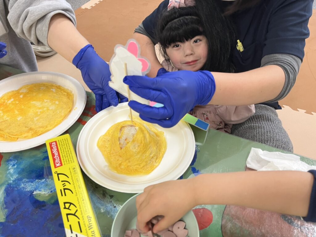 顔はめパネルの製作やちらし寿司を作り、子どもたちにお内裏様とお雛様になってもらいました⭐