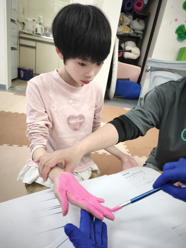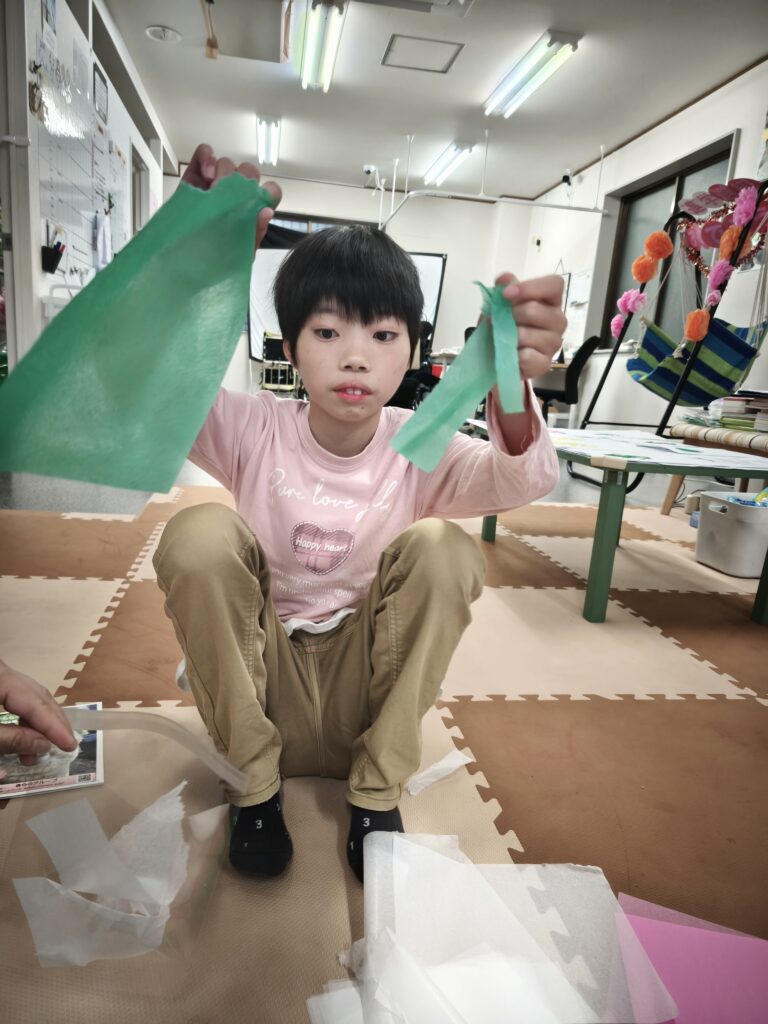 花紙をちぎったり、握ったり、手形で鱗を作ったり、