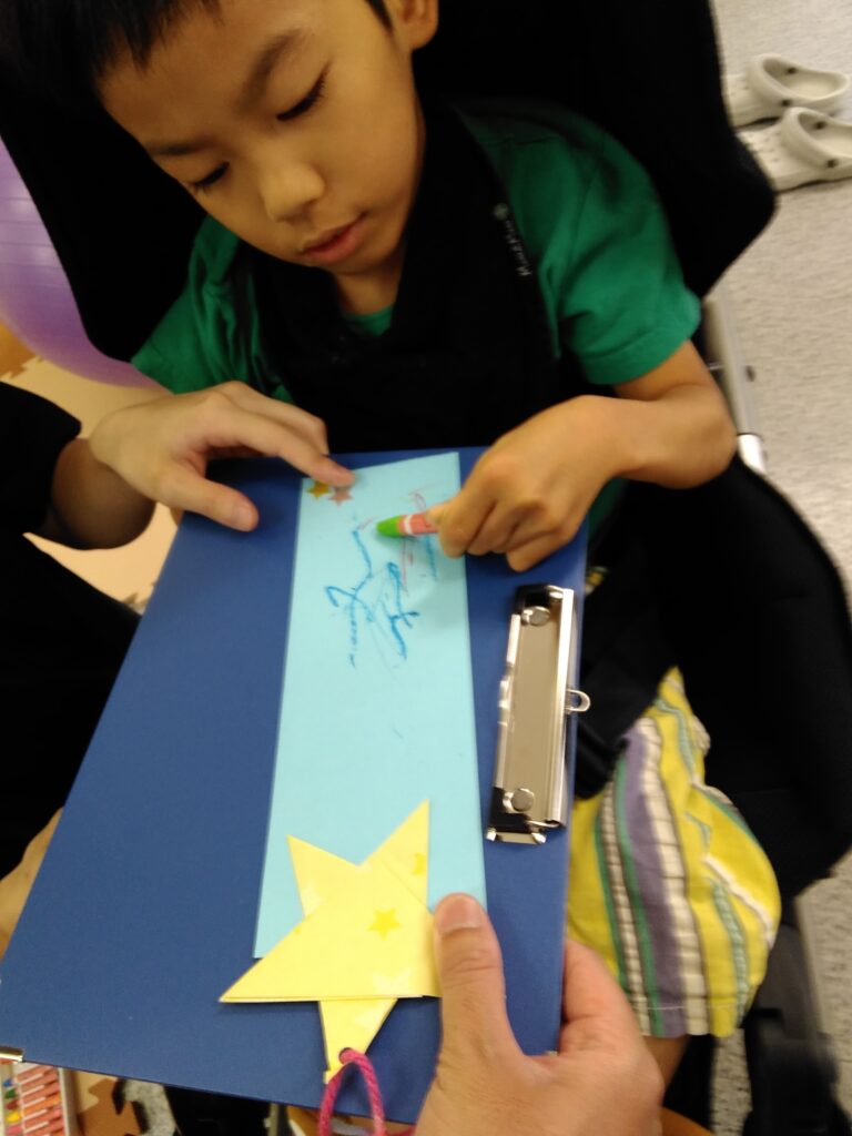 一緒にペンやクレヨンをもって思い思いに願い事を書きました!