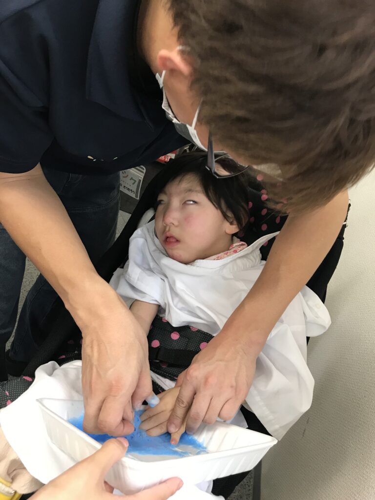 次は手を使って、それぞれ色を付けて…
