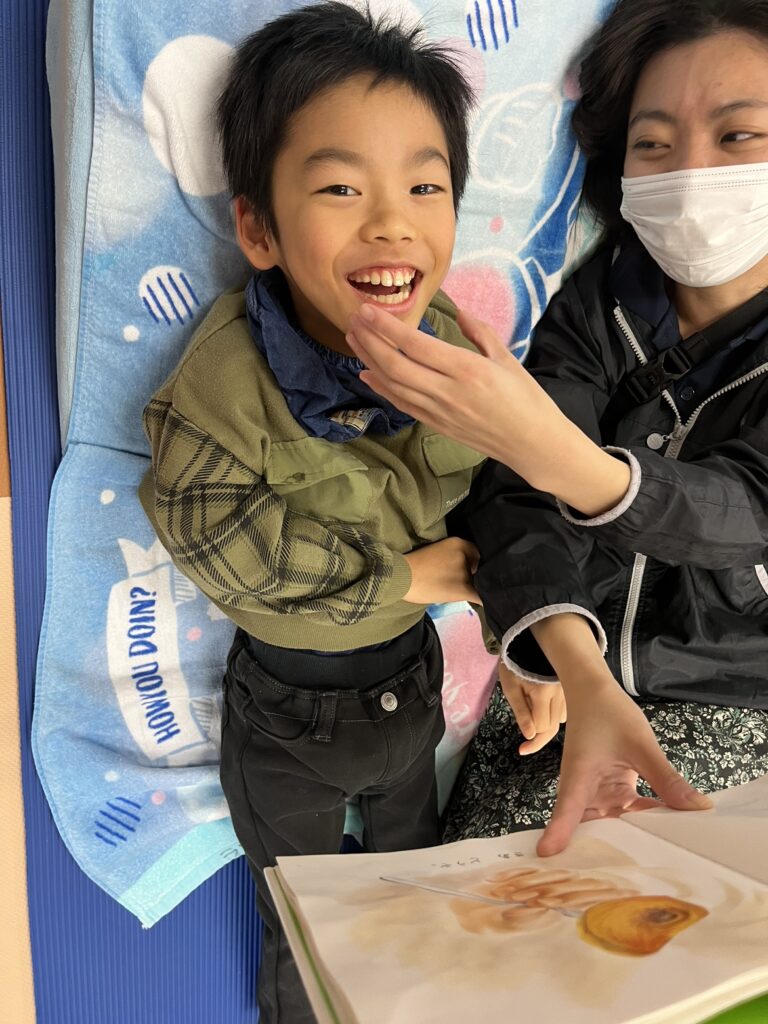利用者様からご寄付頂いた本や、月に1度ラシク淵野辺のスタッフが、淵野辺図書館から子どもたちのリクエストも聞きながら借りてきた絵本や紙芝居、図鑑などたくさんの本を楽しんでいます♪