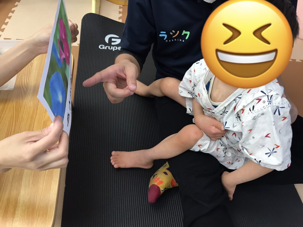 まずは朝顔を確認しました♪写真を見て、スタッフにニコッ☺