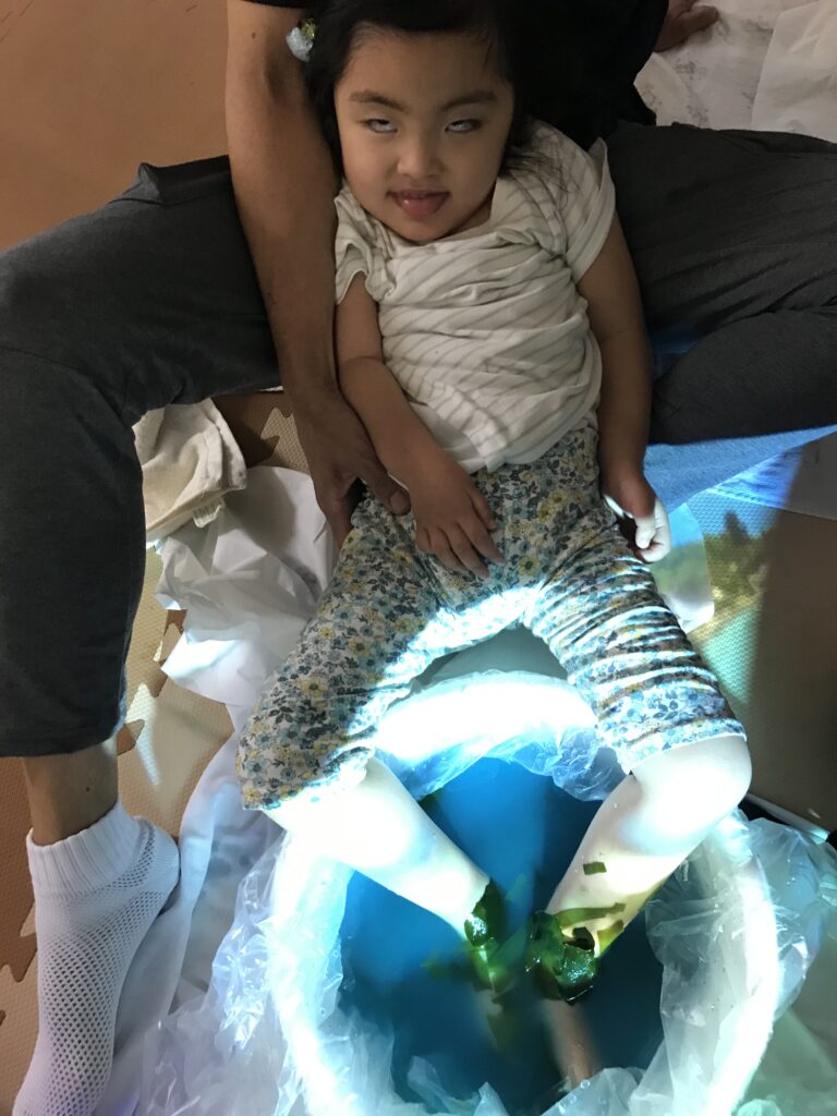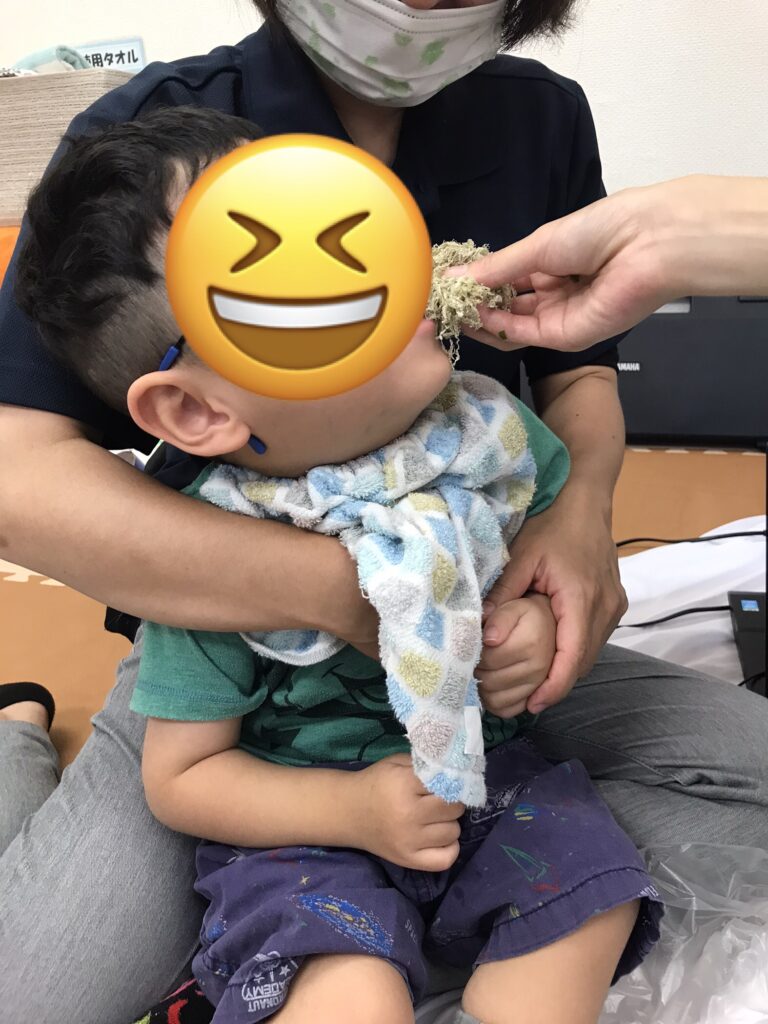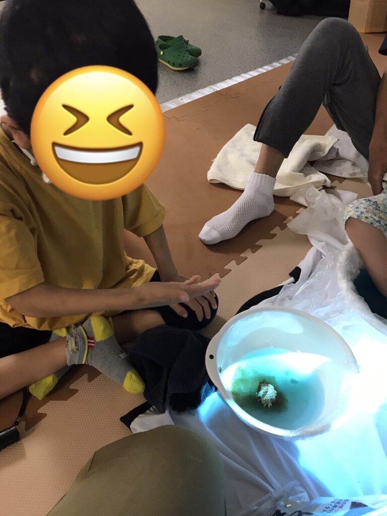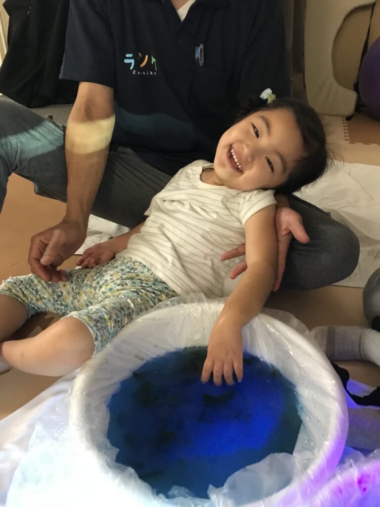 水の感触やわかめの感触を感じてニッコリ😊