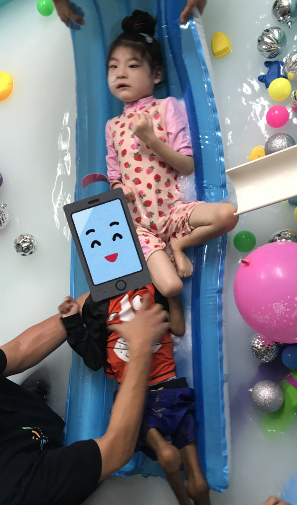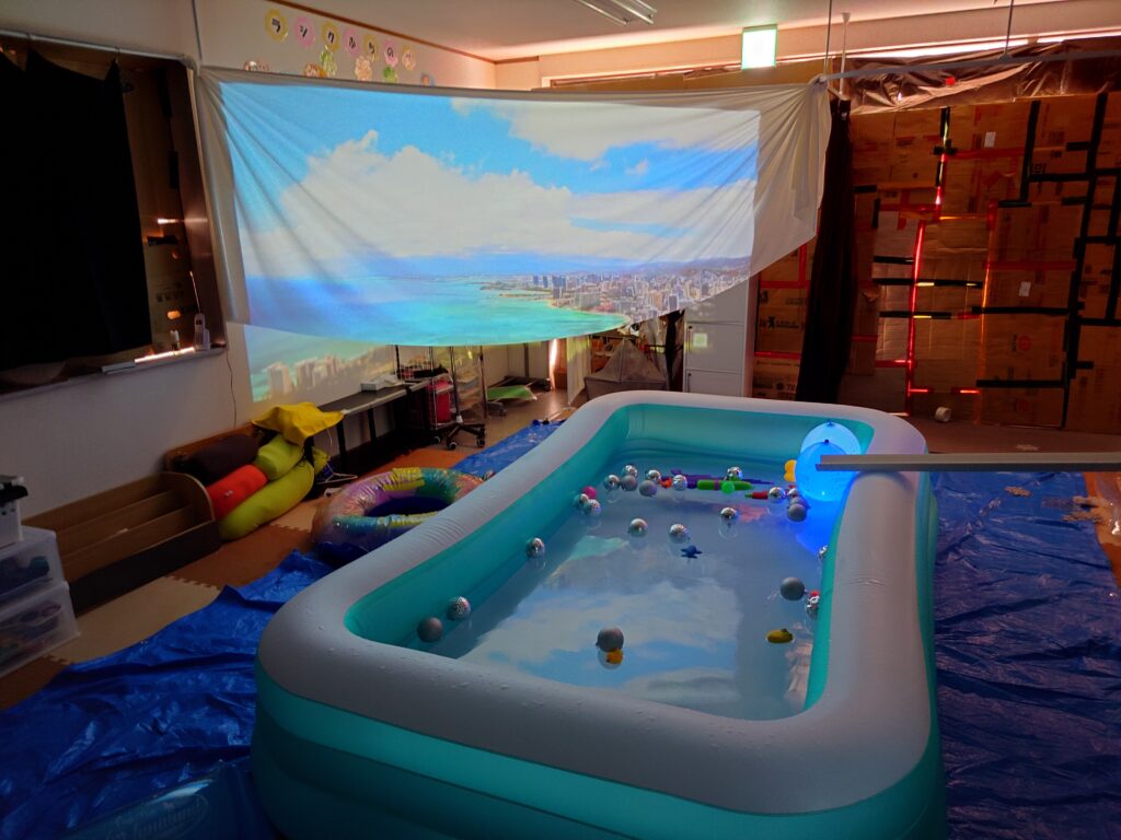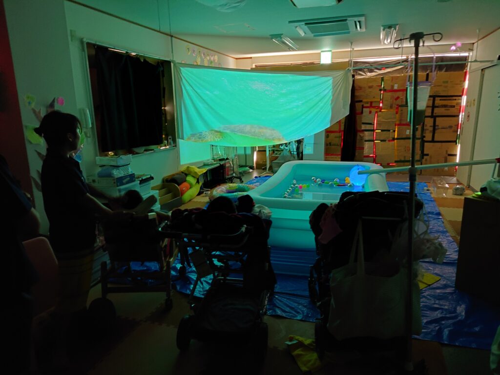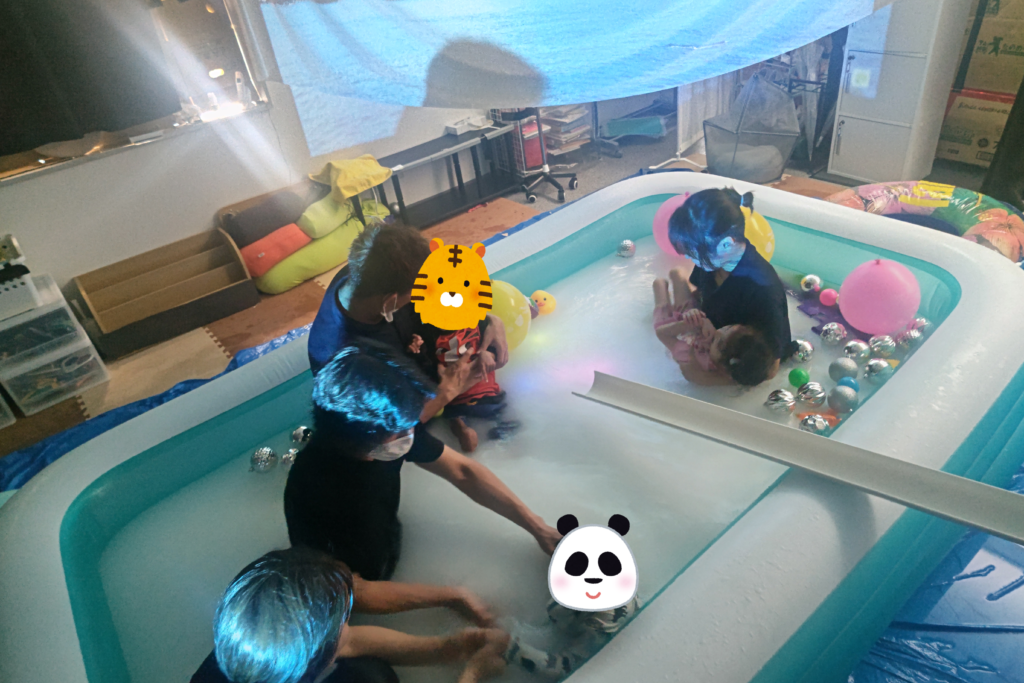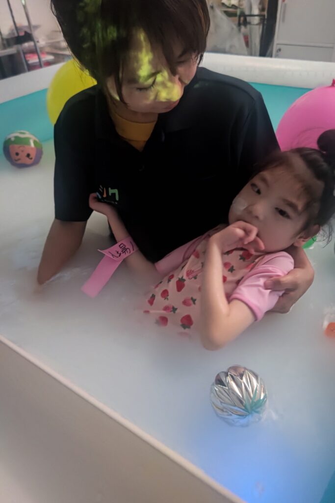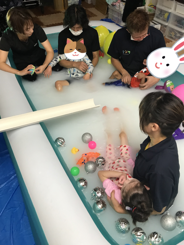 光や音楽の刺激を感じながら、大きいプールの中でみんな思い思いの動きで楽しんでいました(^^♪