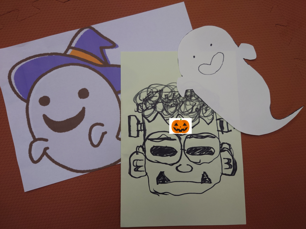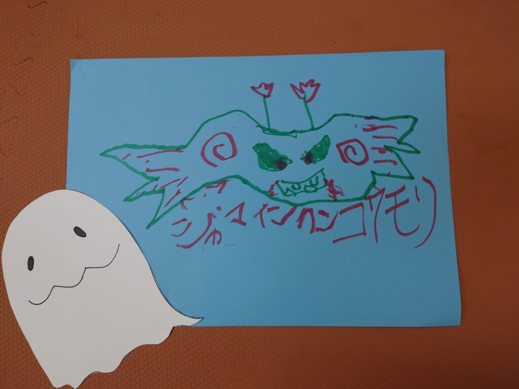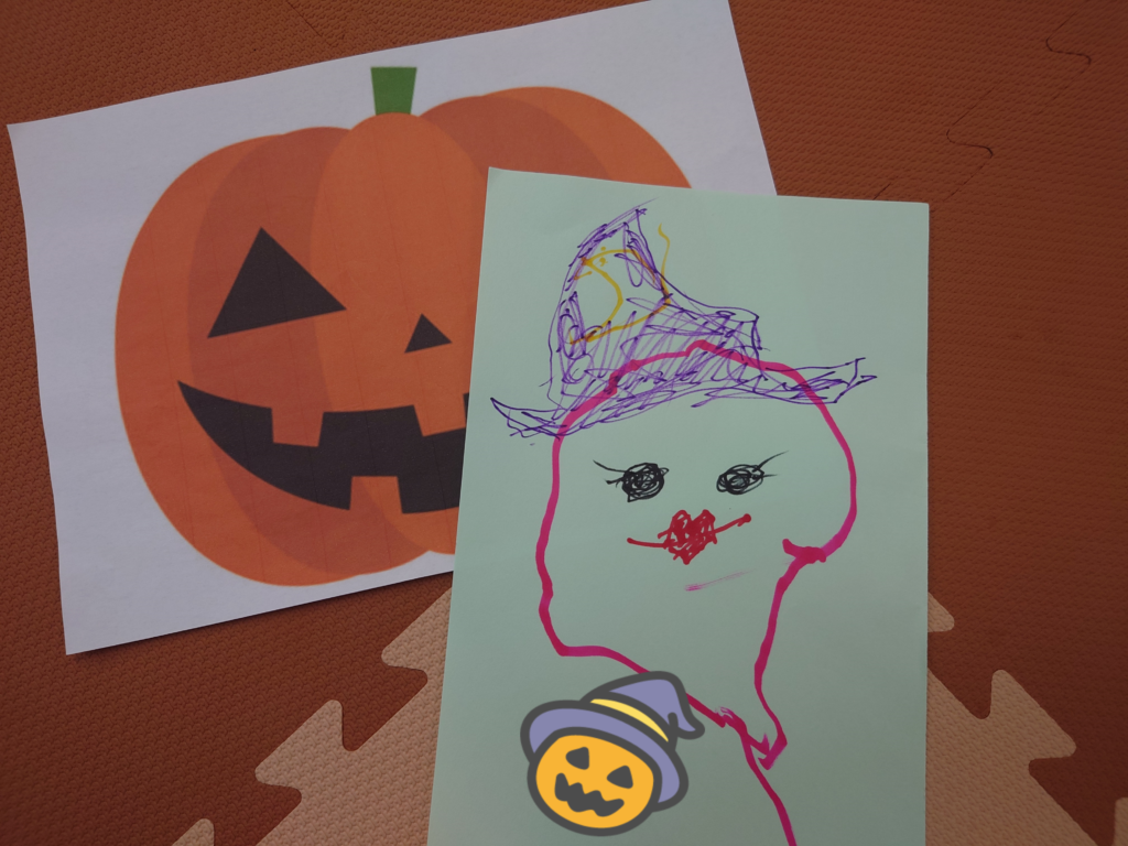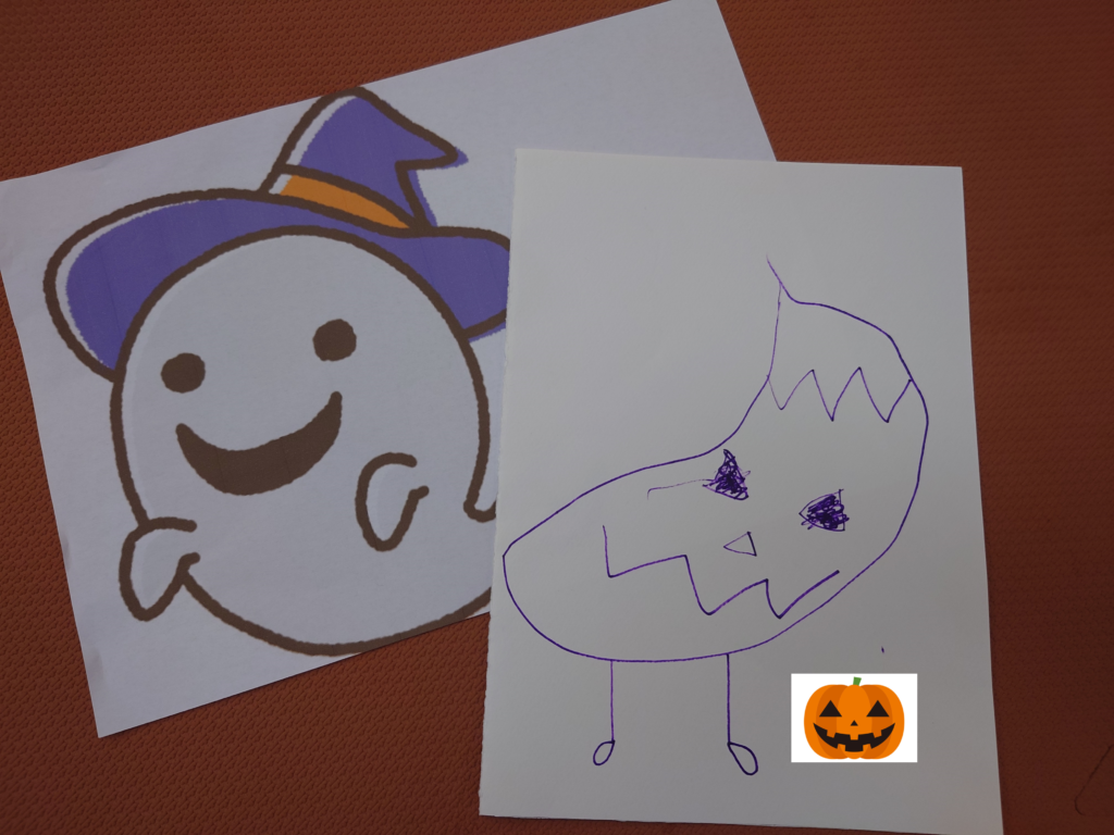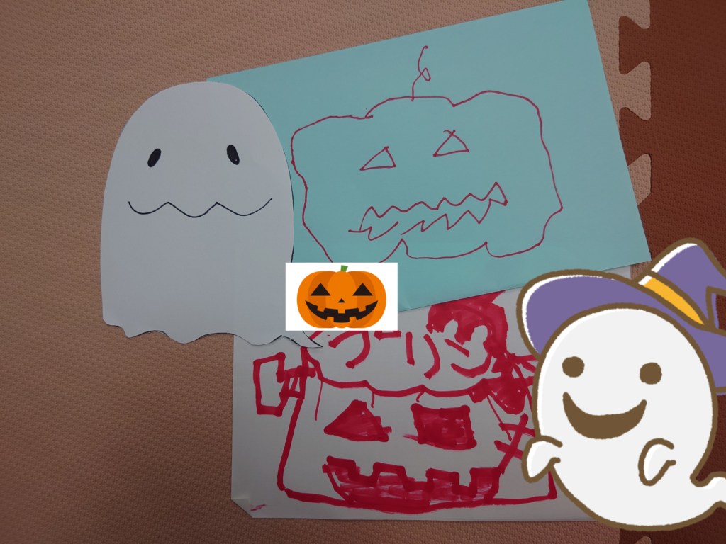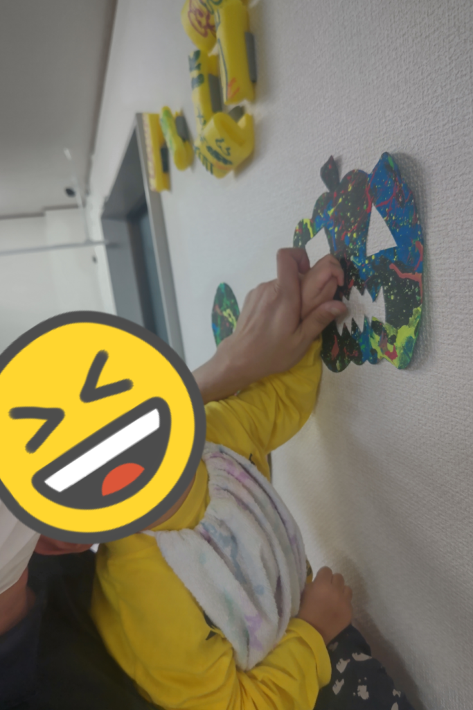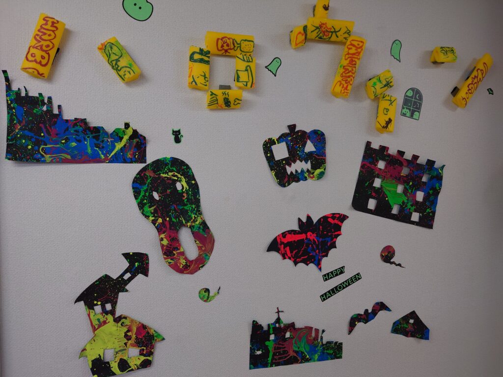 さきほどみんなで落書きした棒は、“ハロウィン”の文字になりました(∩´∀`)∩