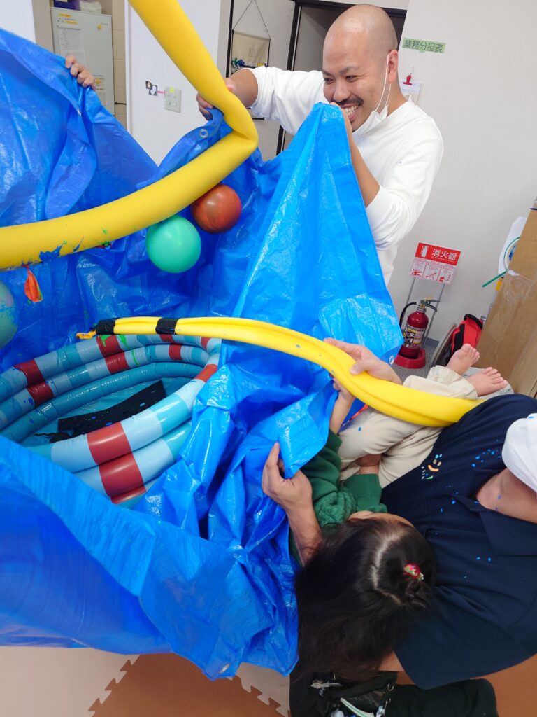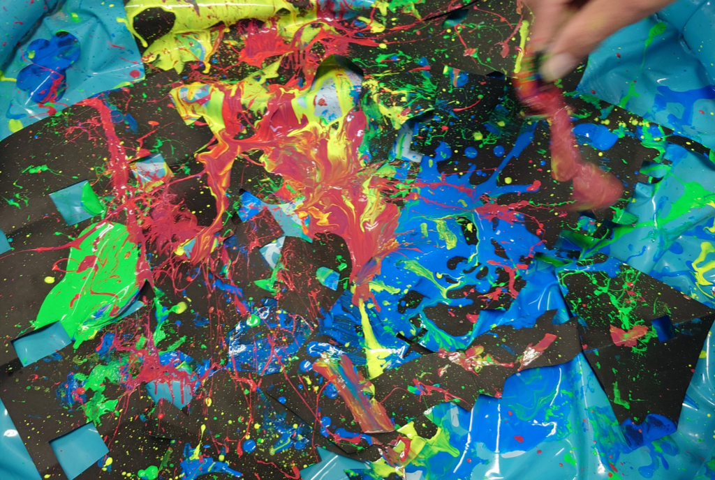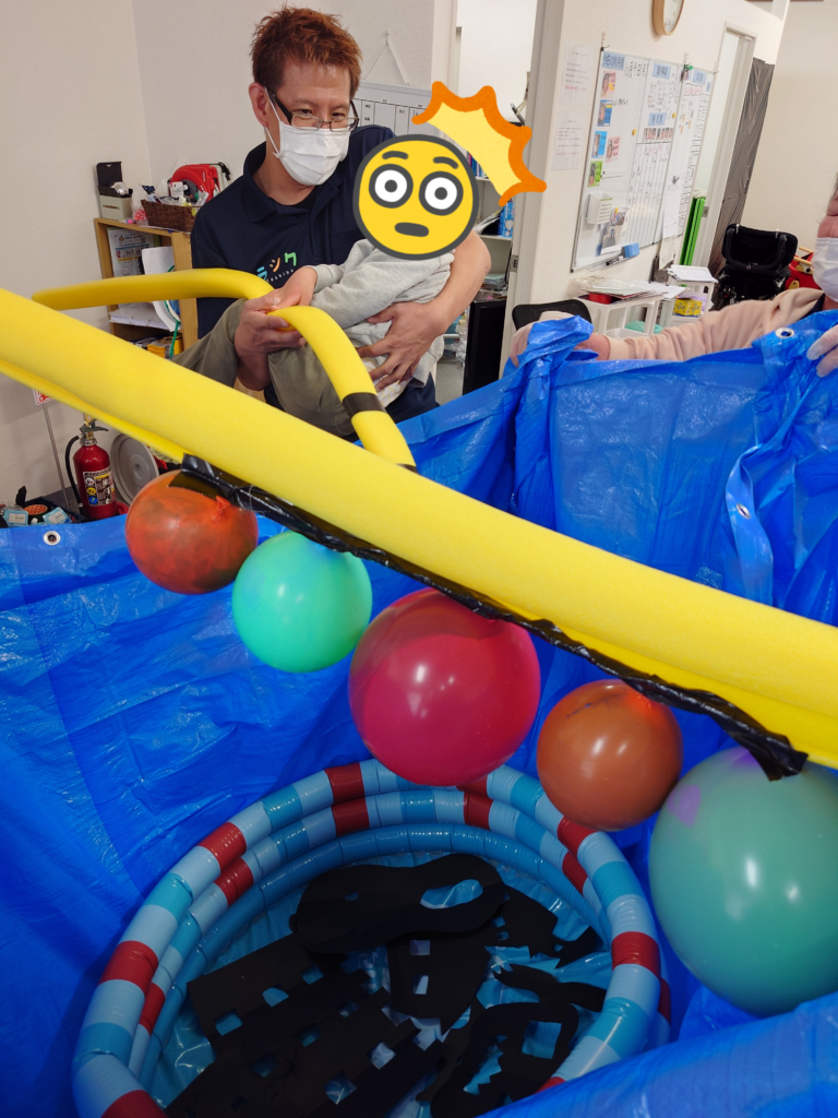絵の具の詰まった風船を……針のついた棒で“パンッ!!!!”