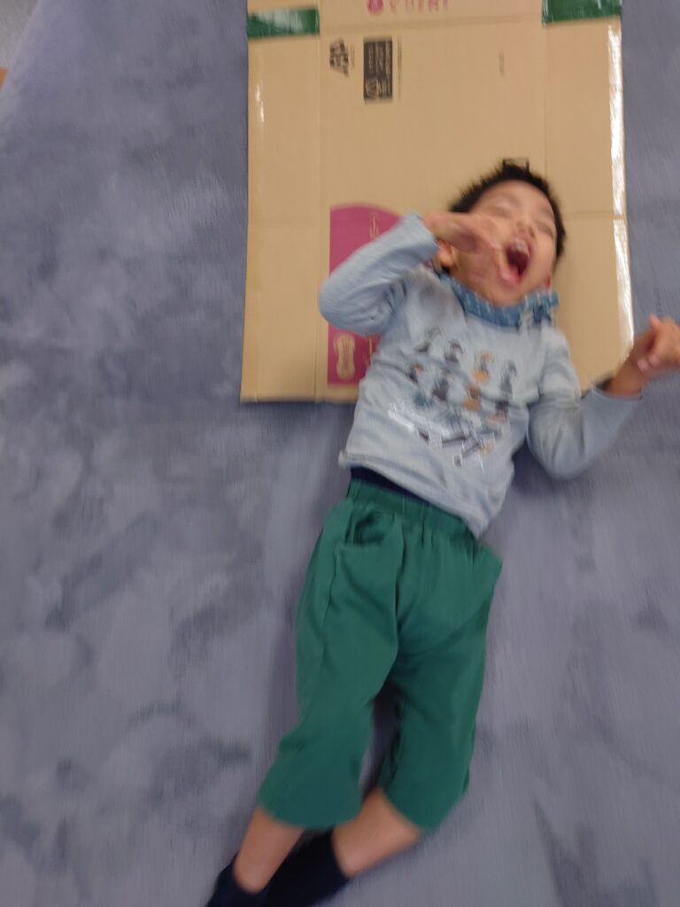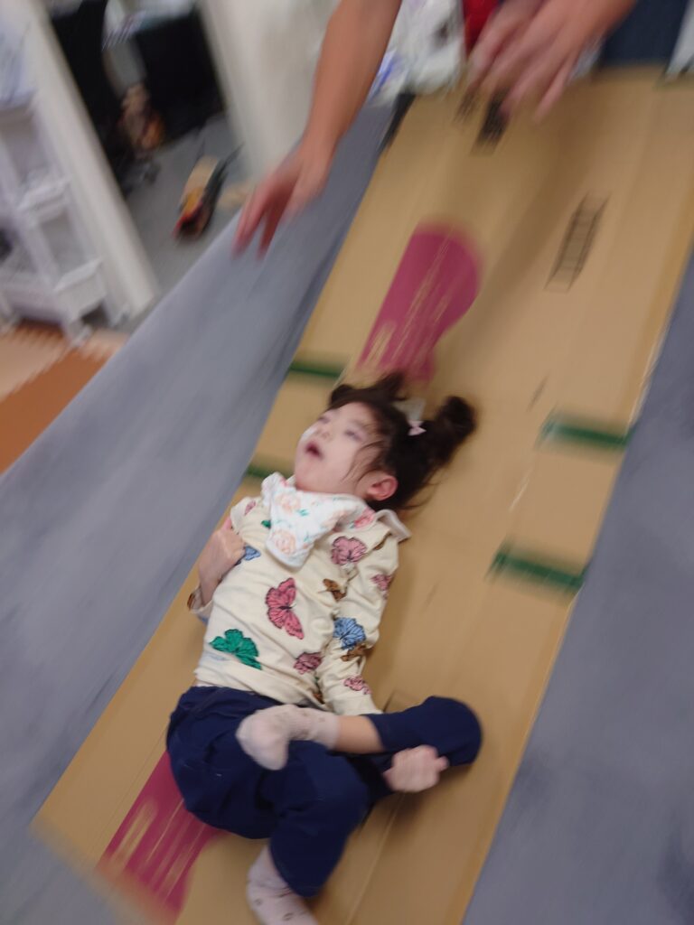 三つ!最後に“体”づくり!! 『滑り台😬滑走距離対決!!』