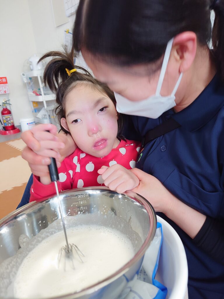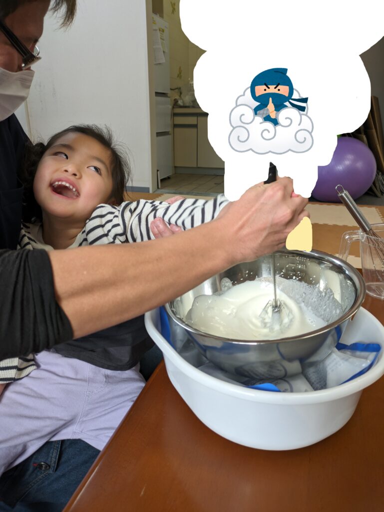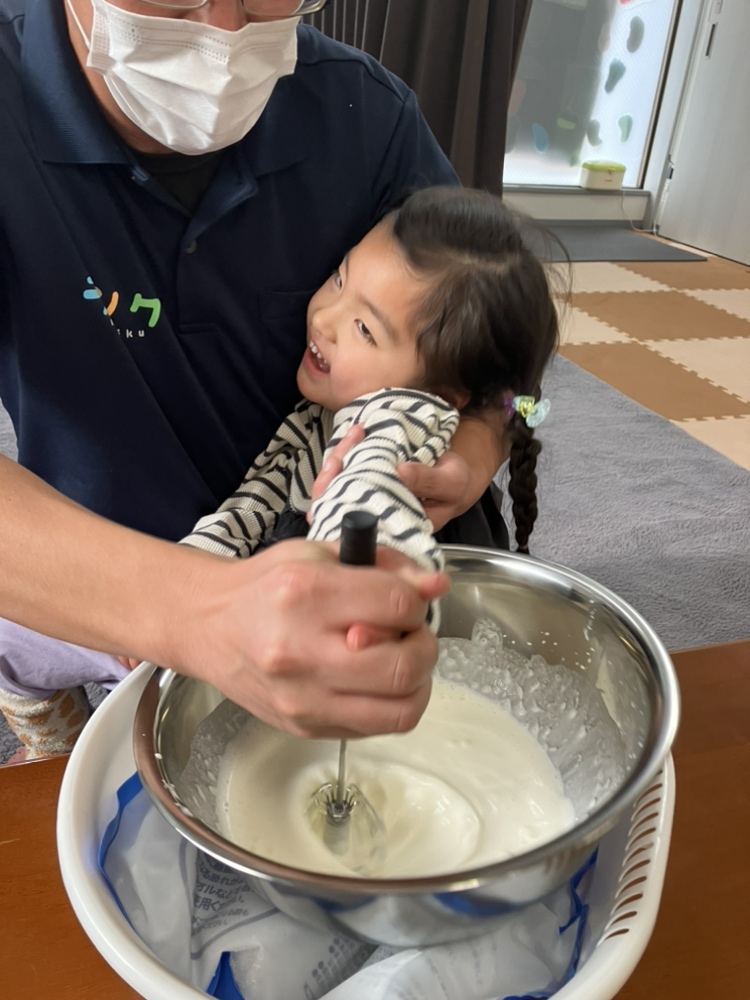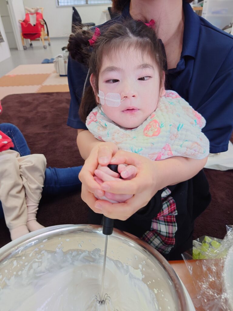 さぁ、最初はみんなで生クリームをホイップ!