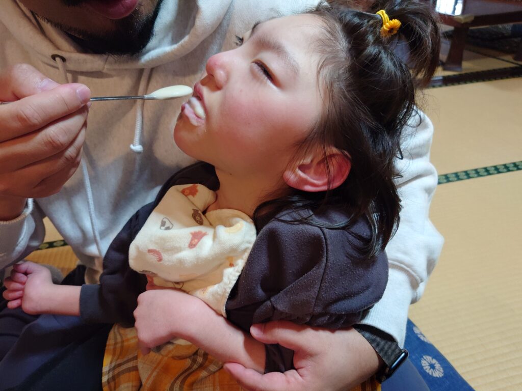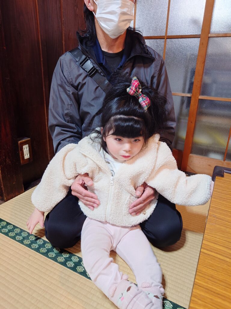 ご厚意で広めのお座敷の席を用意してくださり、子供たちものんびりお昼の注入&ご飯🍜