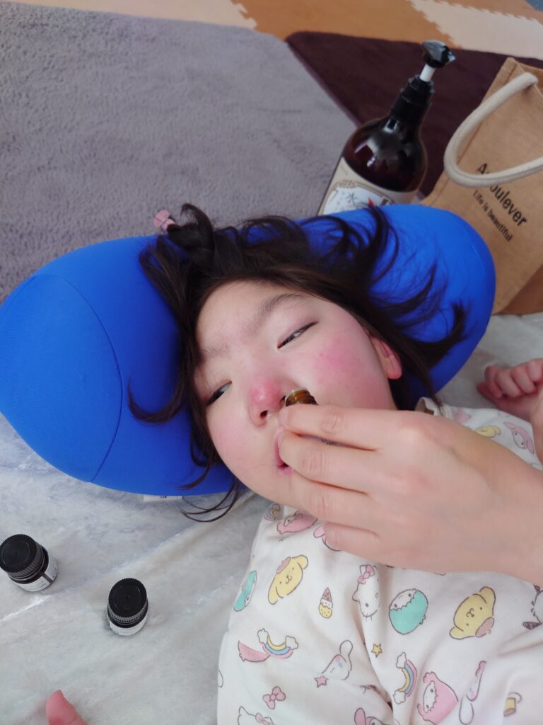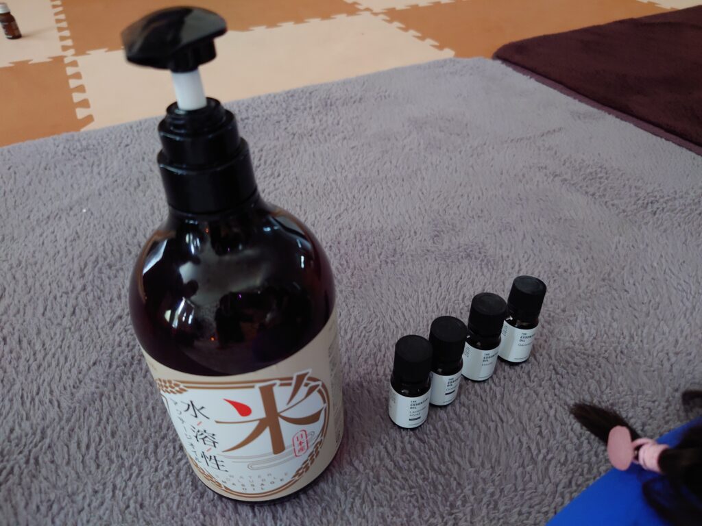 マッサージ用のオイルと、子供たちに買ってきてもらったアロマオイル。