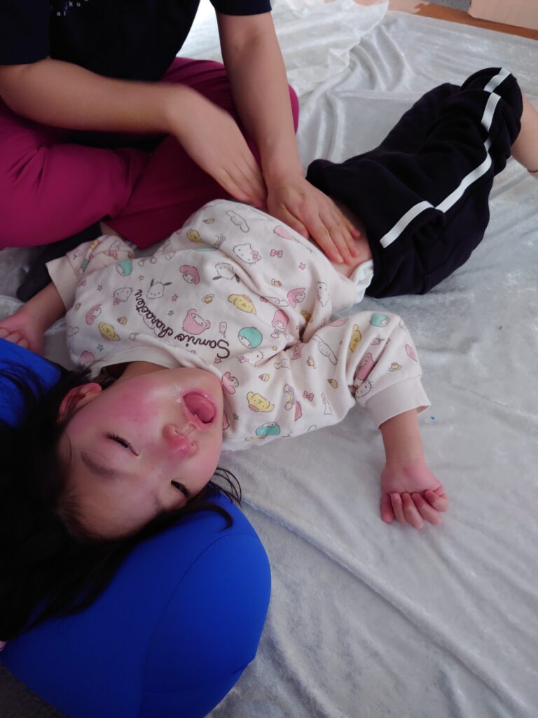 施術中もみんな気持ち良かったせいか、普段は体動の多い子もスタッフに身を任せ落ち着いて受けてくれており、とても雰囲気の良い空間を作ることが出来たと思います。
