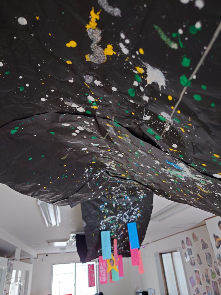 本来は笹の葉ですが、より近くに届くように短冊は天の川に直接吊るしちゃいました!