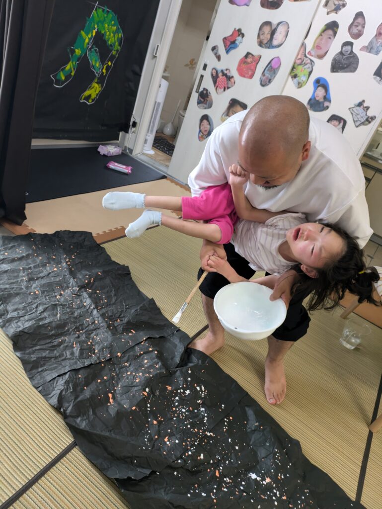 絵の具を散らして…