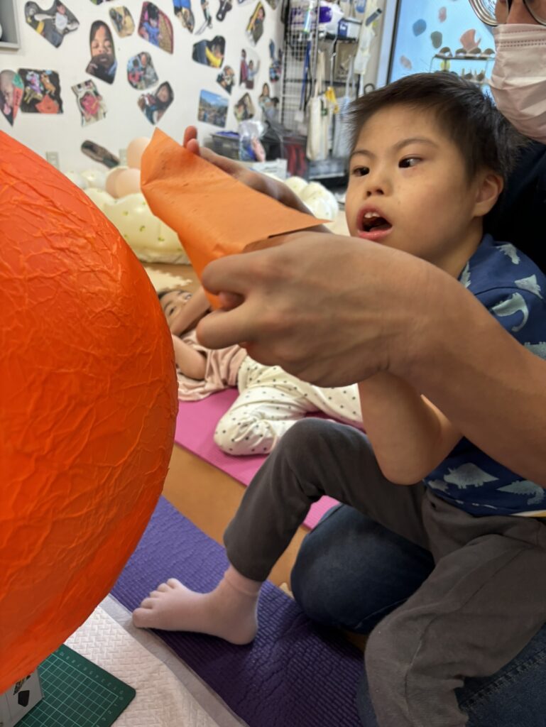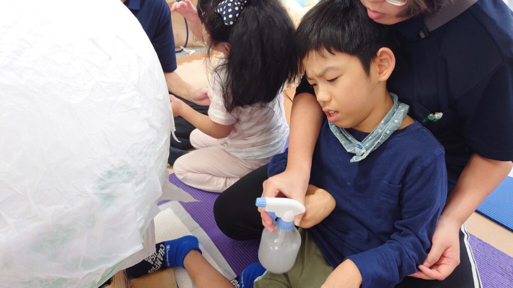 まずはそのピニャータを、大きな風船を使って張り子の要領でみんなで作りました!