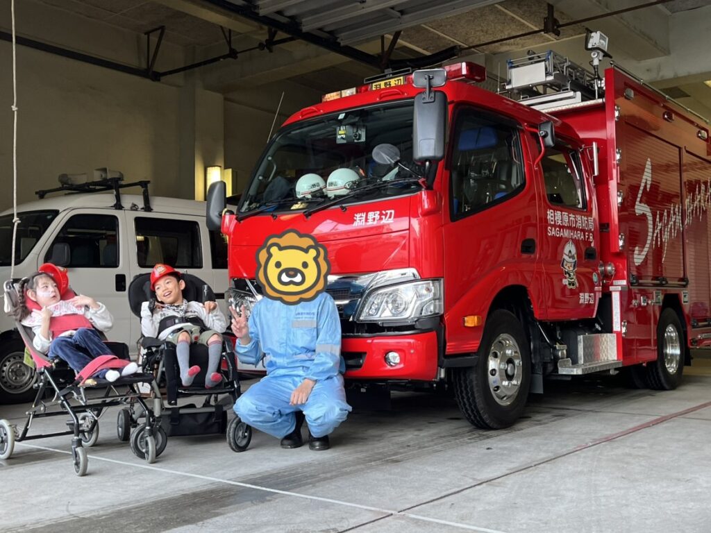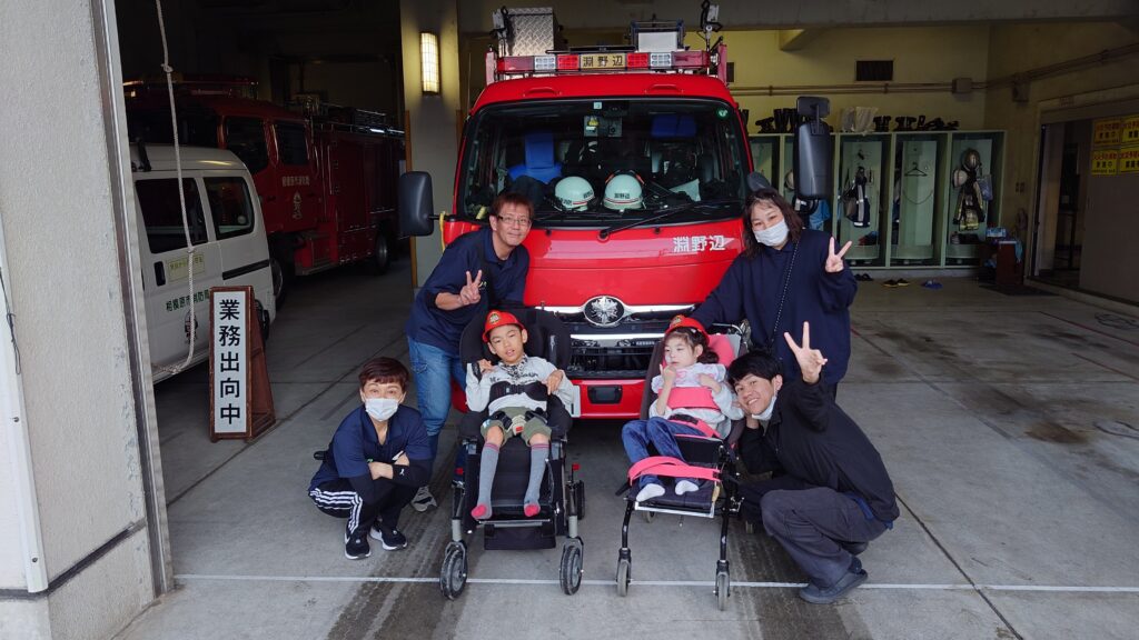 分署へ着くと、ちょうど出動から戻ってきた消防士さんたちが迎えてくれました🎵