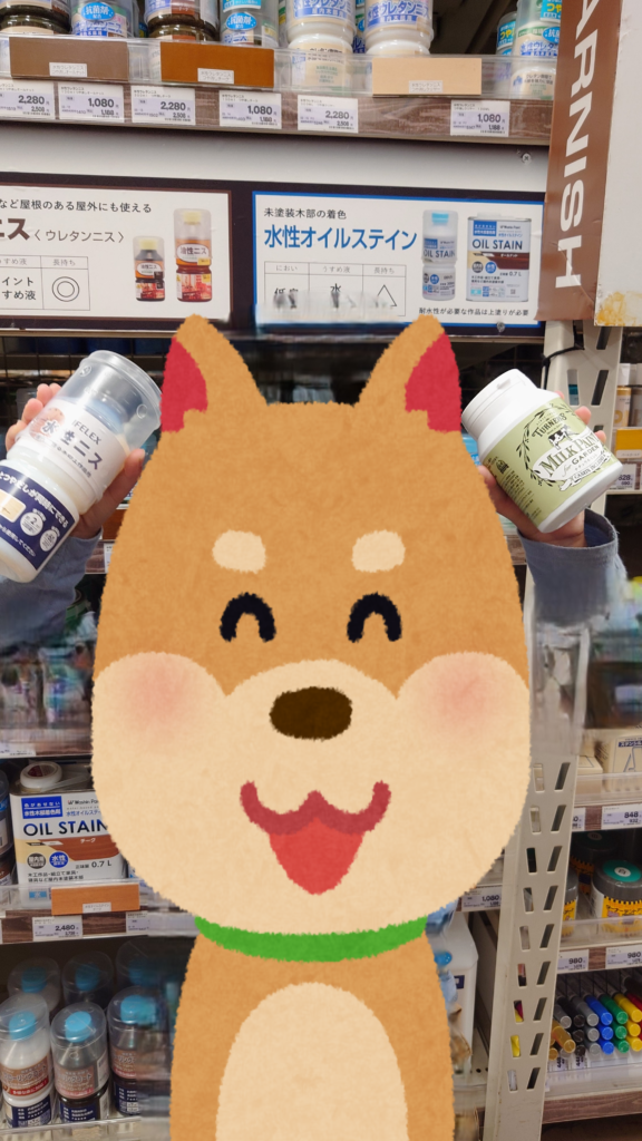 ホームセンターに行って、木材や塗料、ニスや金具などの材料を購入。