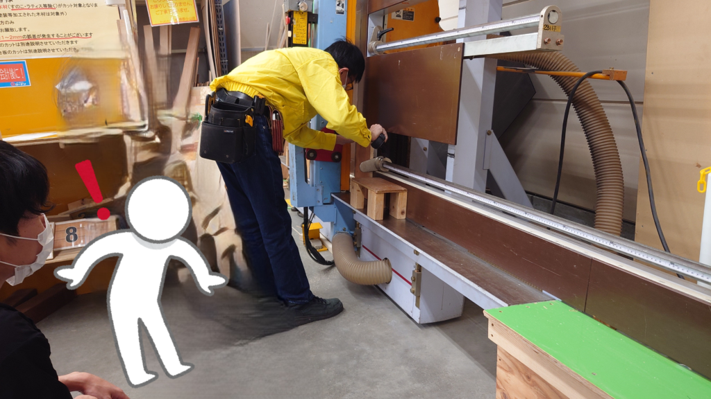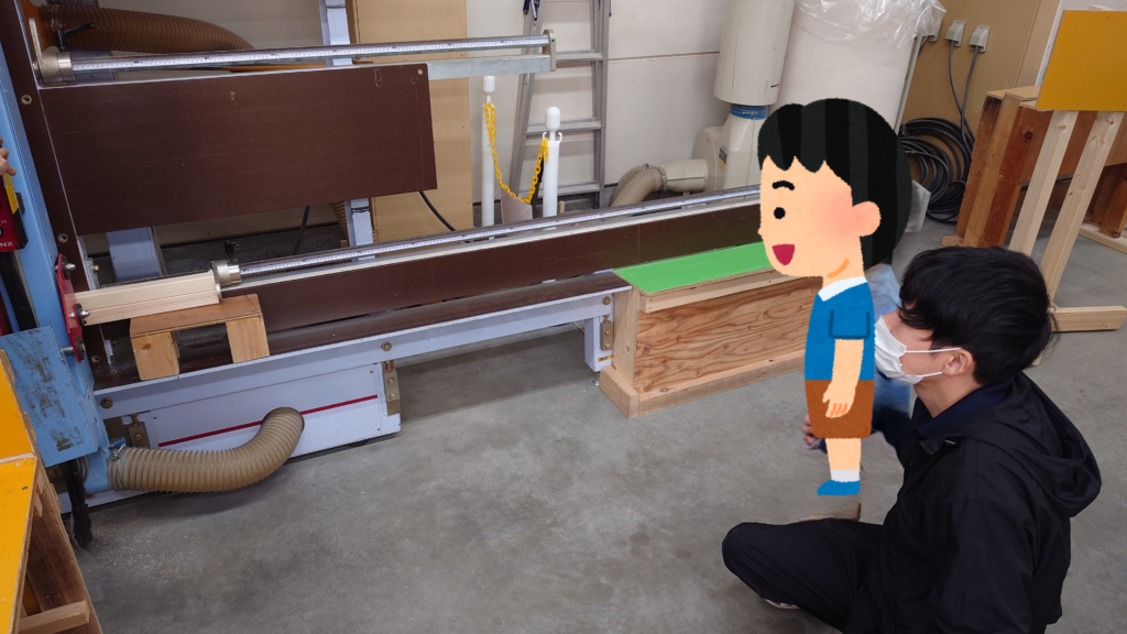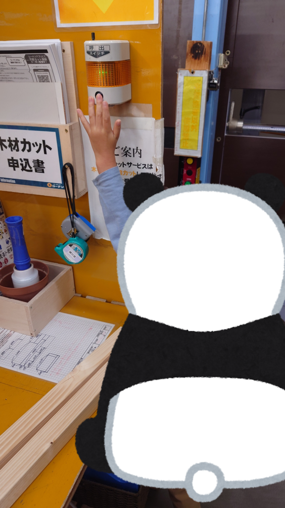 木材のカットサービスの所では、大きな機械に大興奮でした(≧▽≦)b