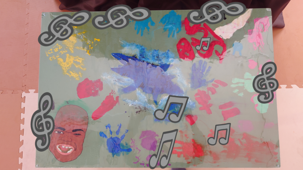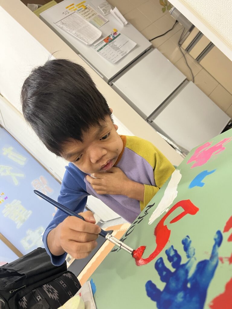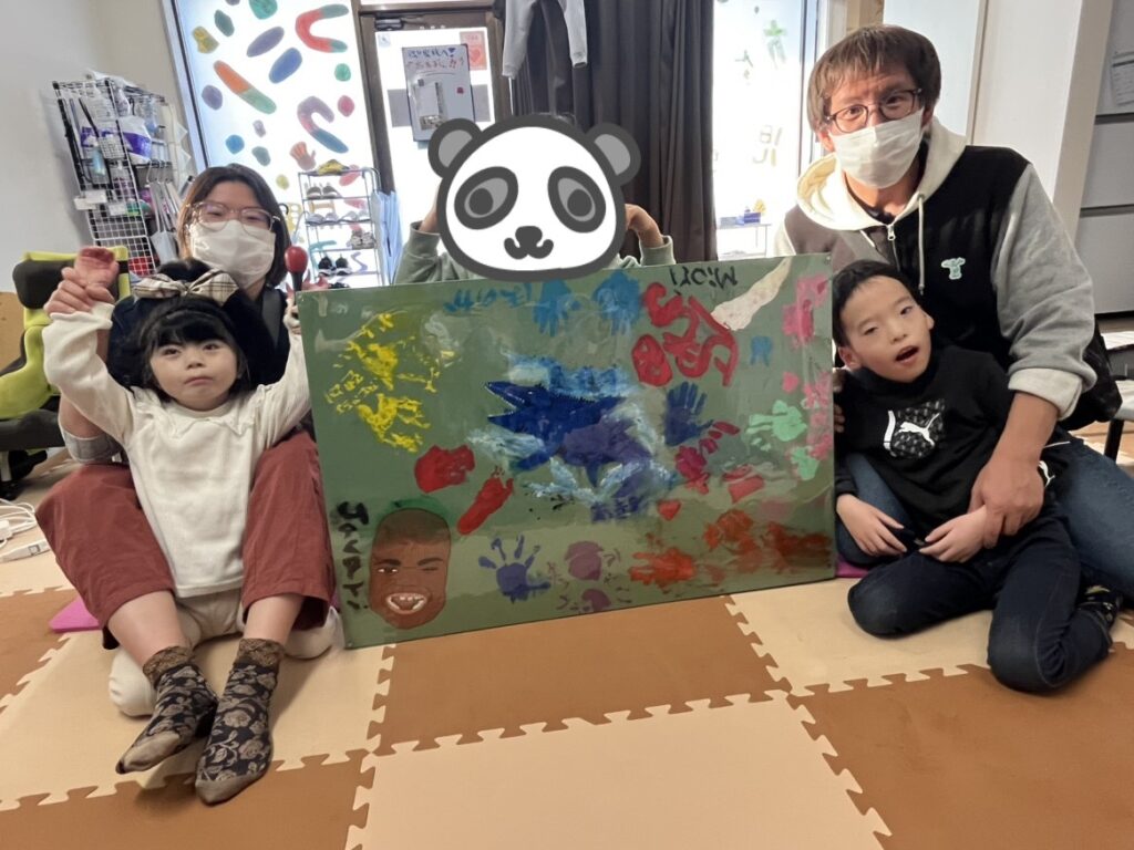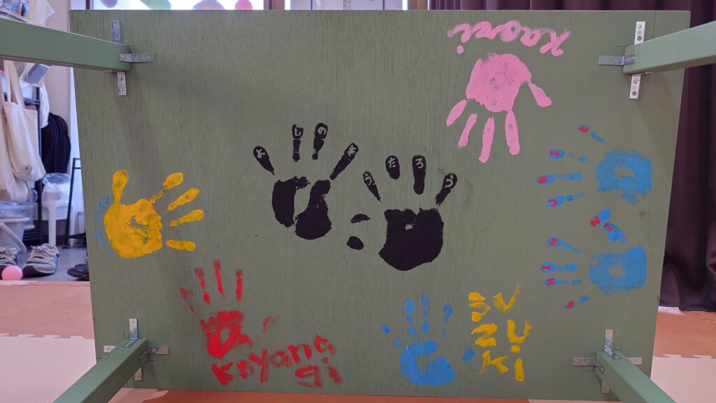 みんなの手形や絵が描いてあるところに、サインも入れます!