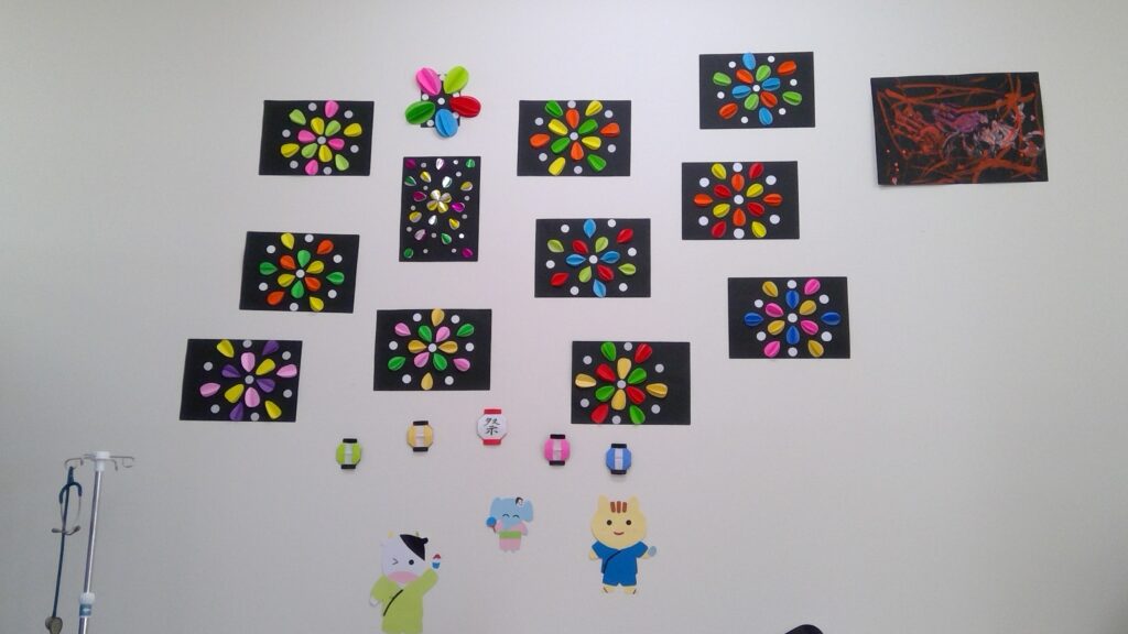 壁面飾りの花火に並べて、にぎやかになりました!
