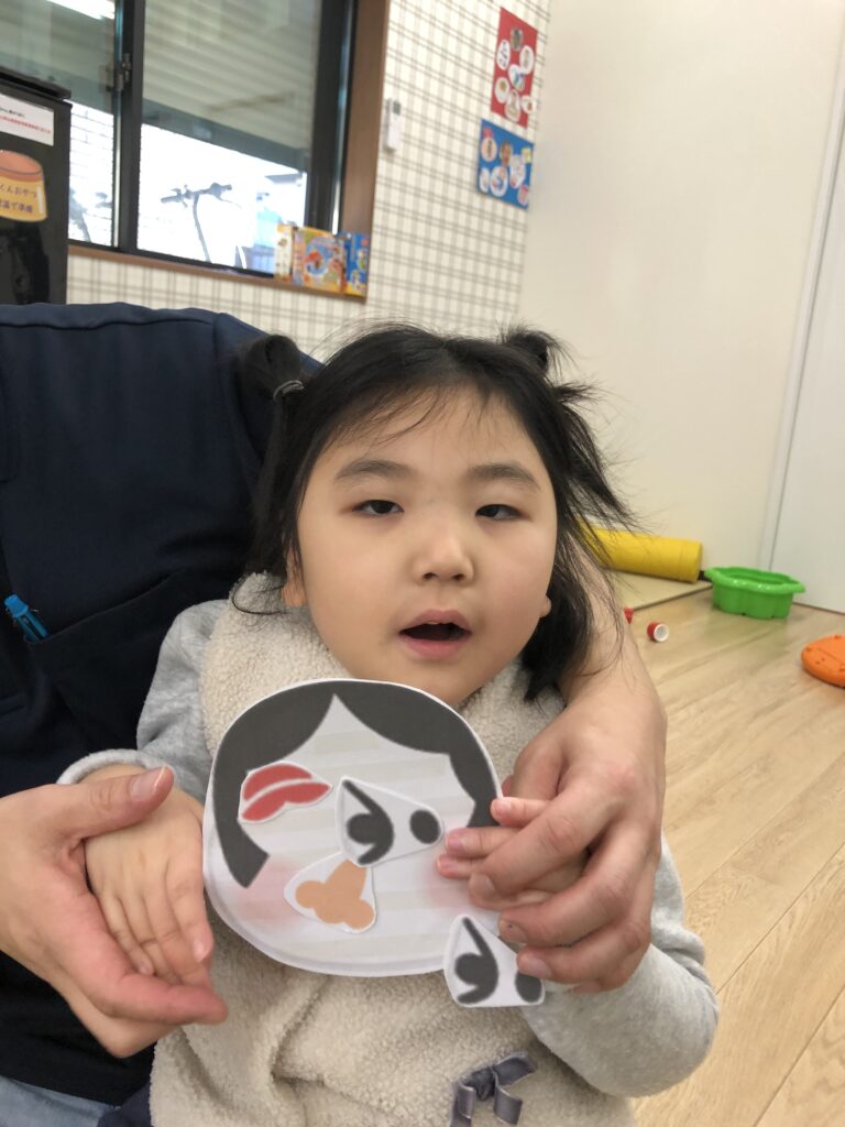 みんなで作った壁面その①は、福笑いです(^▽^)/