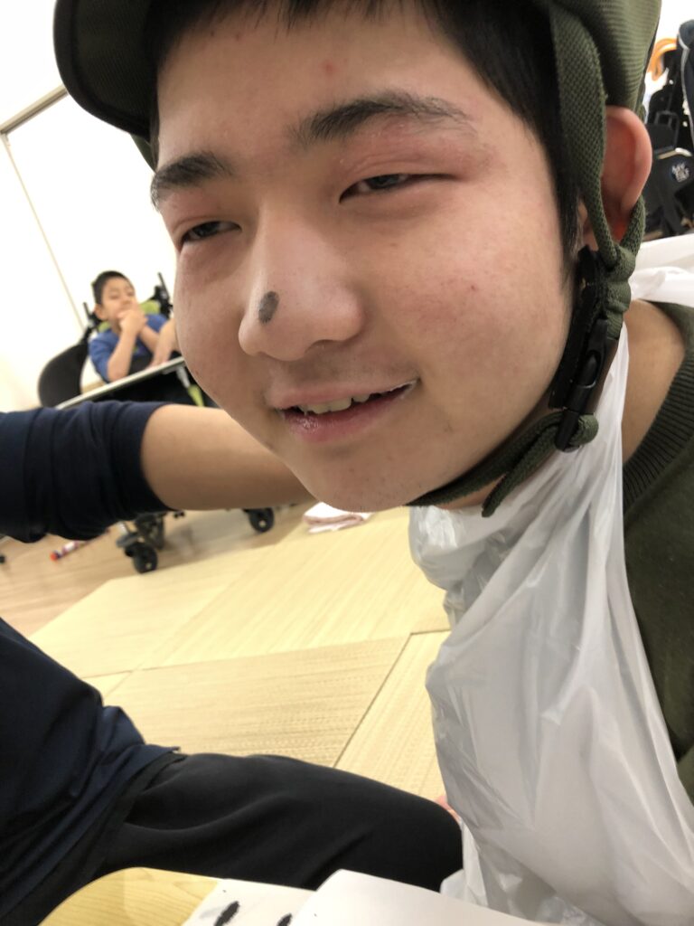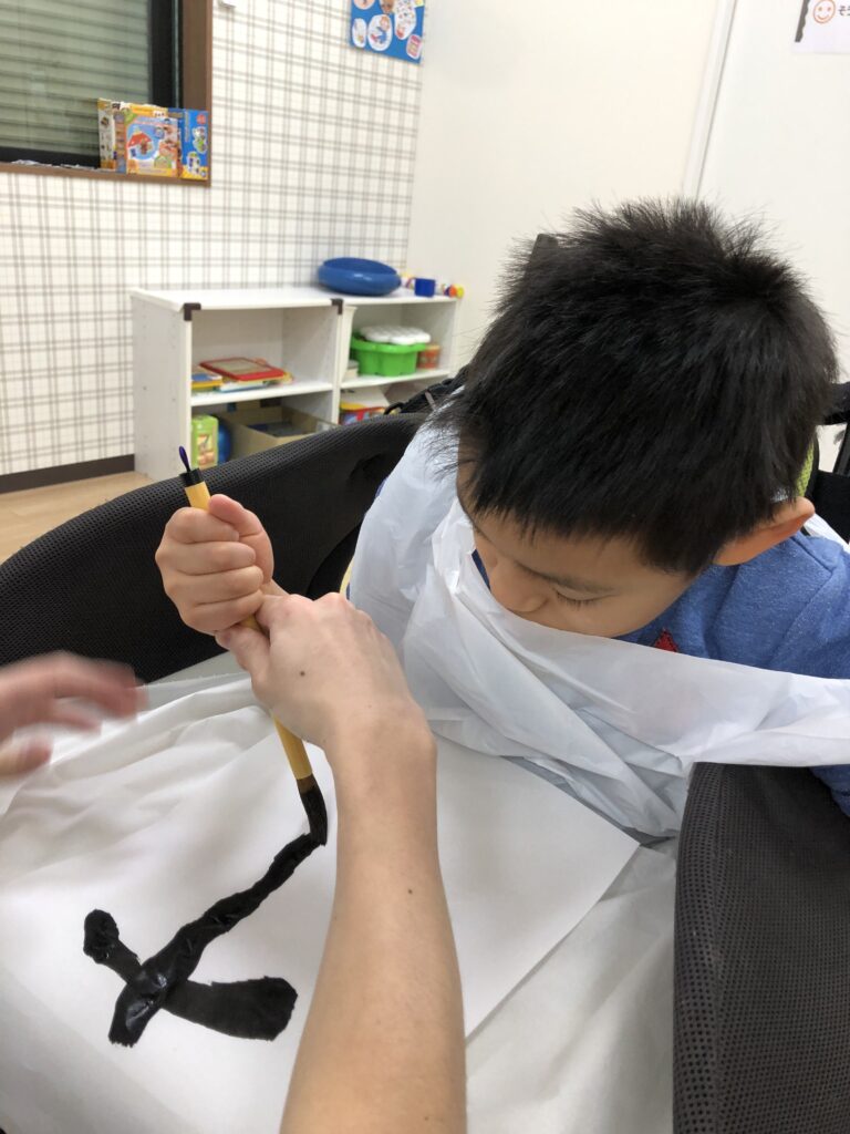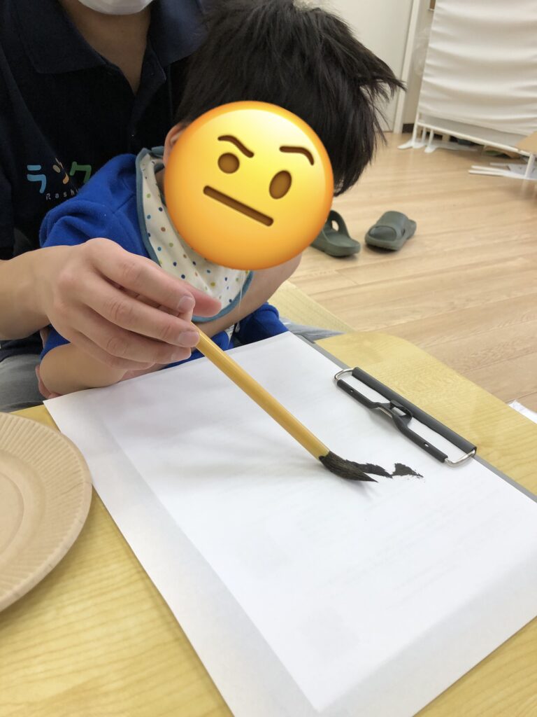 おっと、鼻に墨汁が…😂(後にこの写真を見せると、本人も笑っていました 笑)