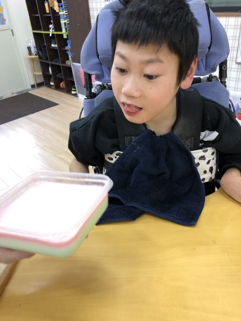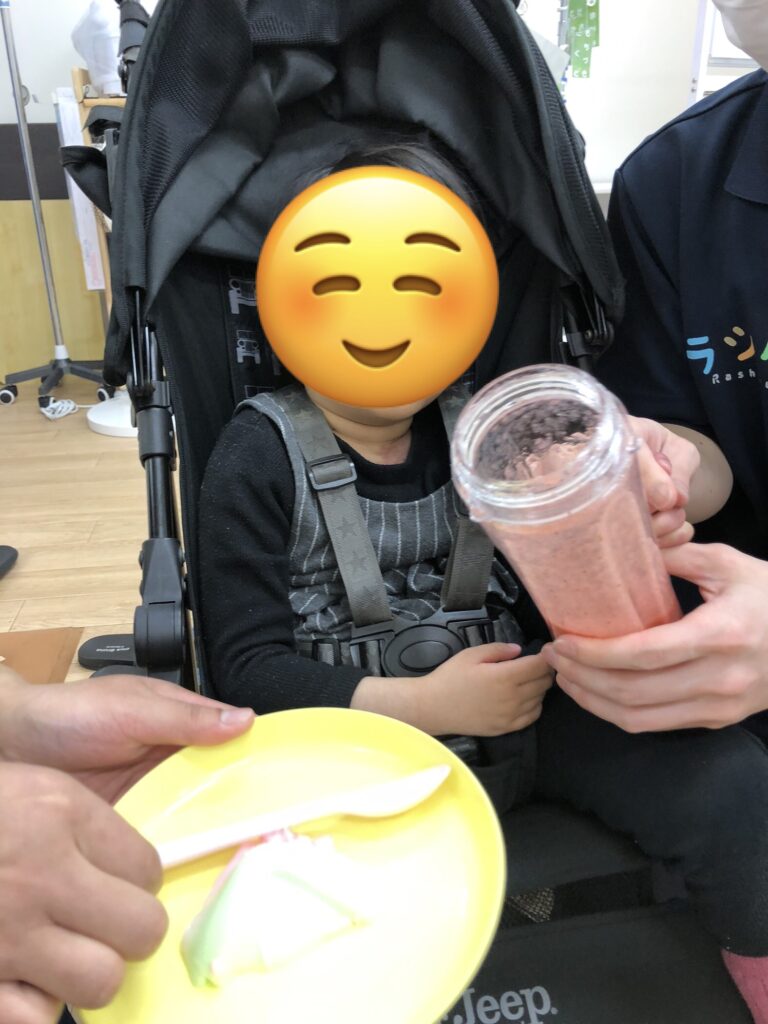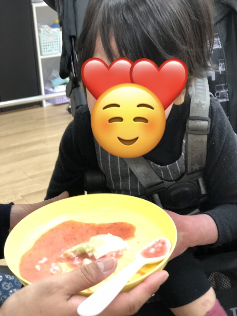 「おいしいね」ぺろりと食べちゃいました♪素敵な笑顔(^^♪