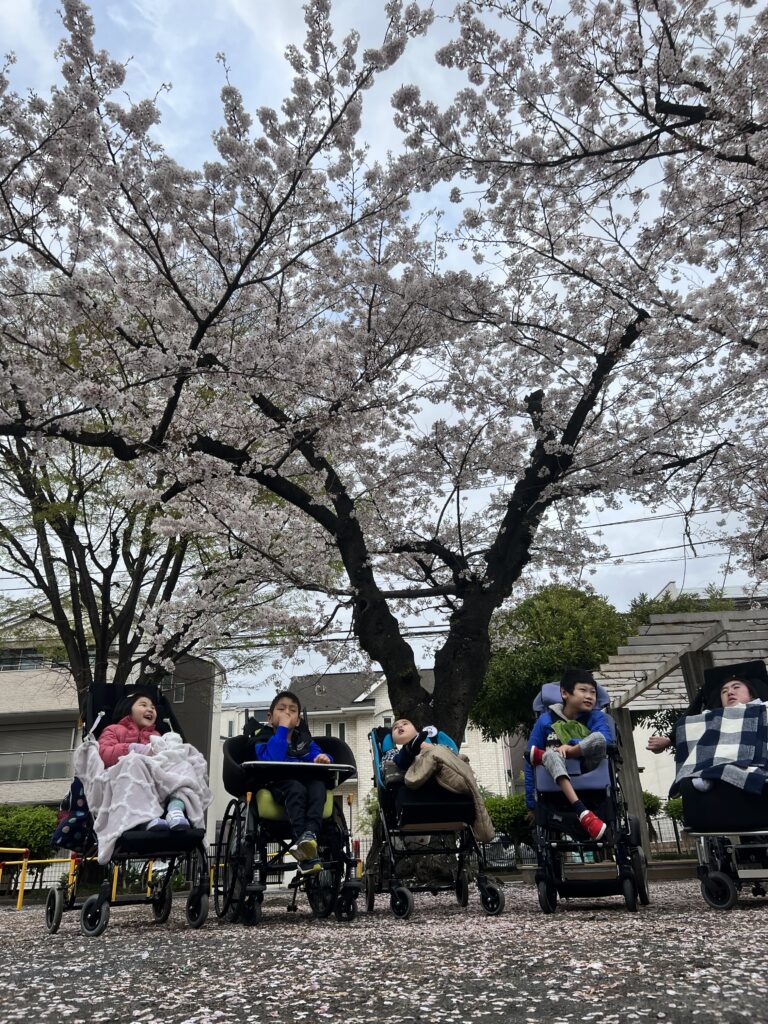 「さくらきれいね~」「お花がいっぱいね~」とスタッフとお友達のみんなで会話を楽しみました😄