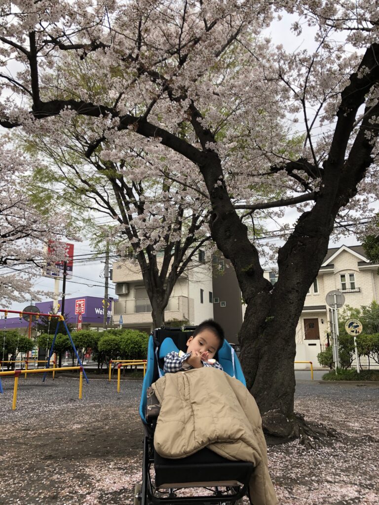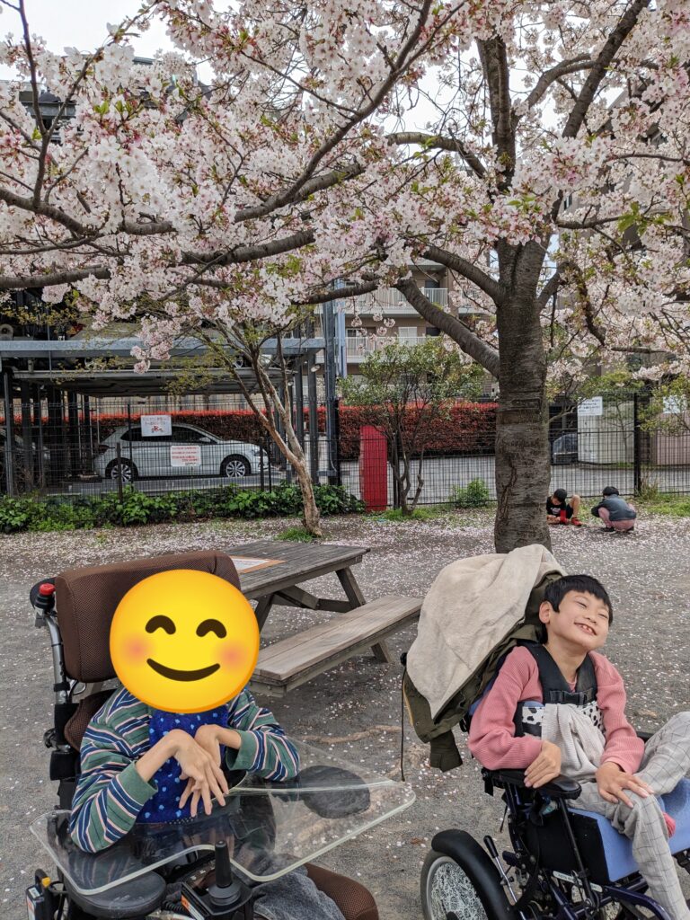 公園に着くと、みんなキョロキョロ👀風が吹くとヒラヒラと花びらが舞います。