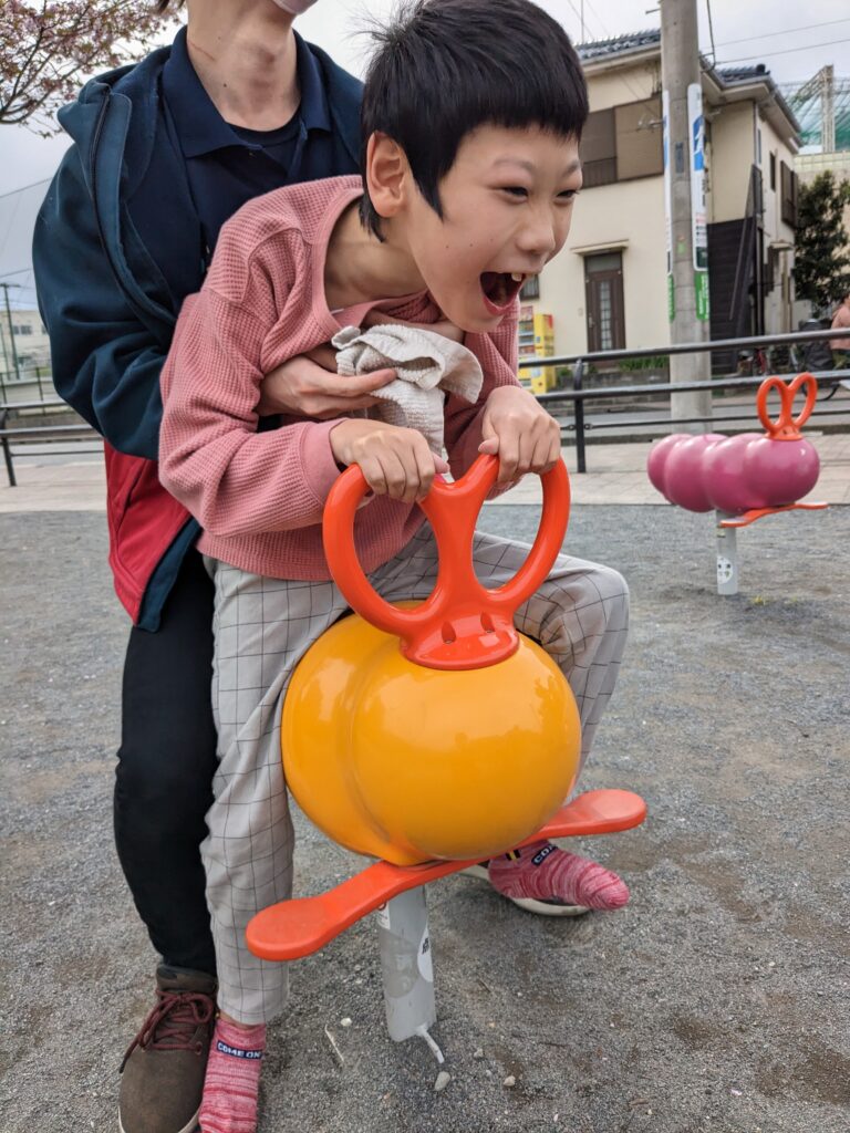 公園の遊具も堪能しました!!ニコニコ笑顔で乗っている姿がとても楽しそうです(^^♪