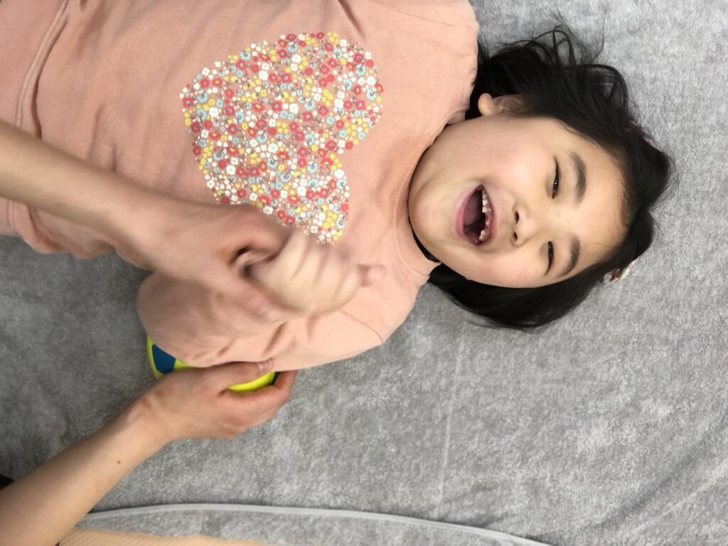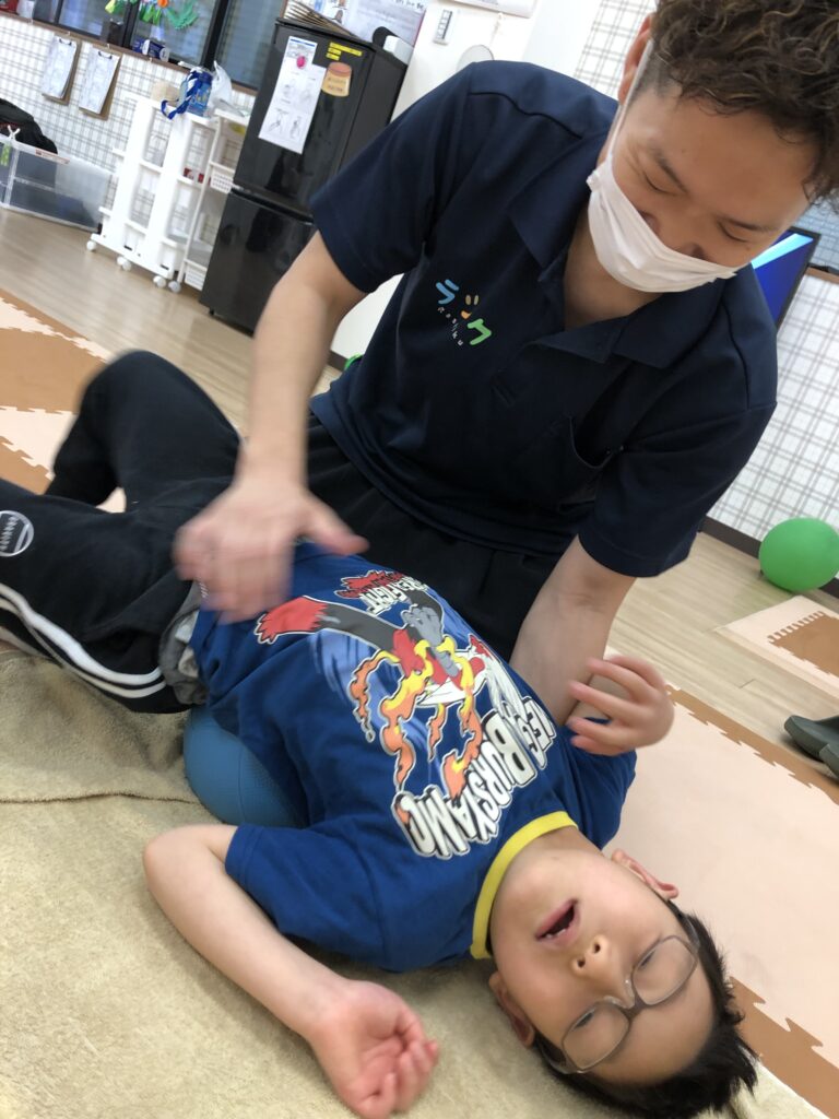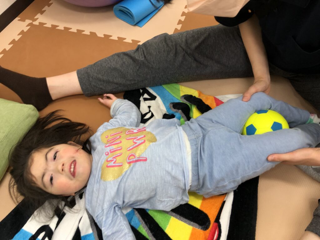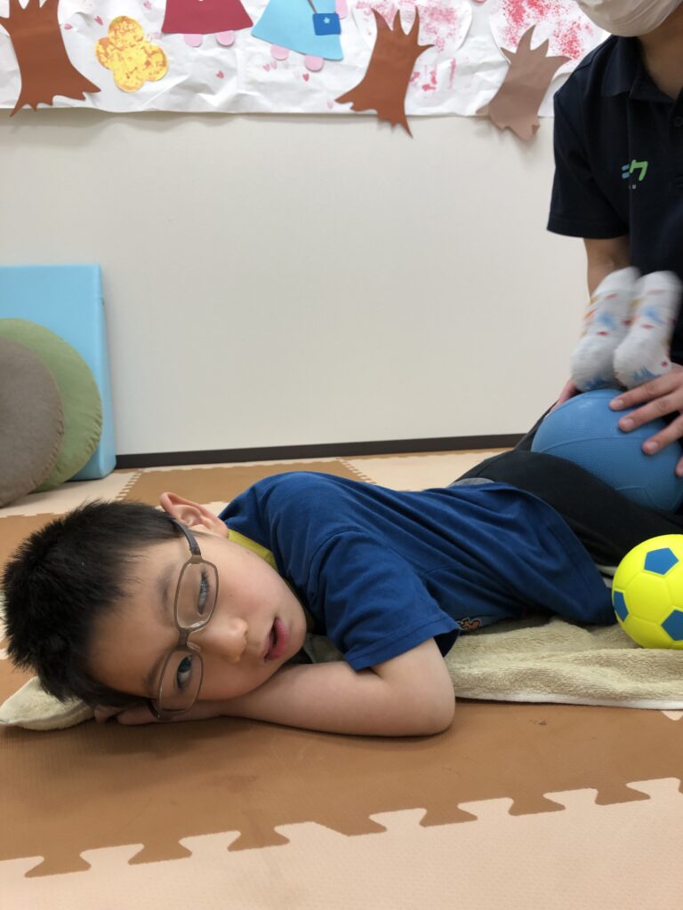 ラシクでは、硬いボールでゴリゴリするというわけではなく大小様々で硬さも異なるボールをいくつか用意し、その子にあわせたマッサージを行いました👍
