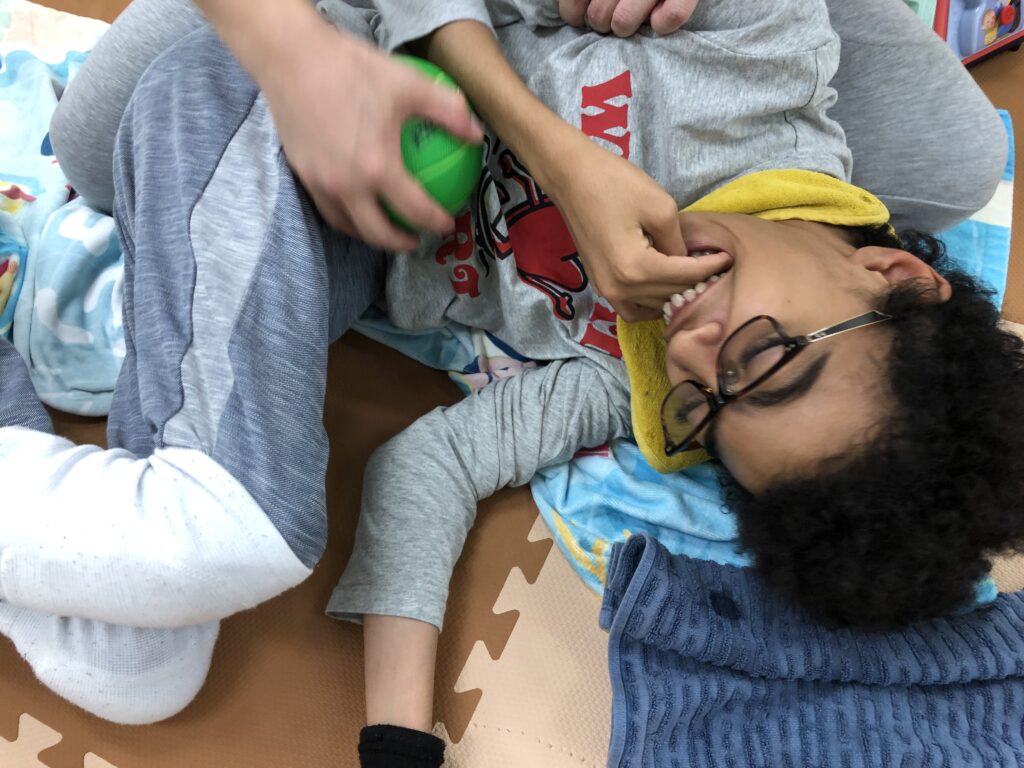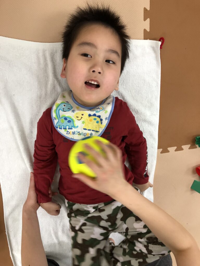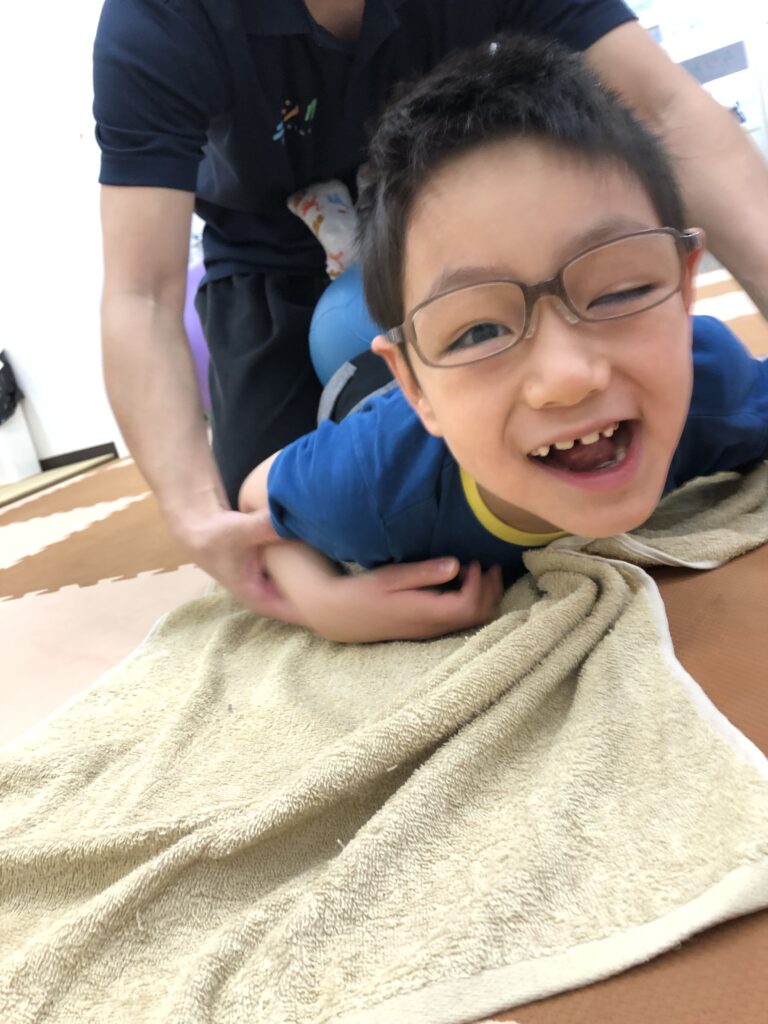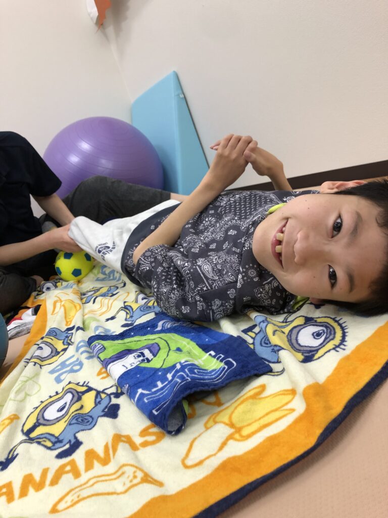 ラシクでは、硬いボールでゴリゴリするというわけではなく大小様々で硬さも異なるボールをいくつか用意し、その子にあわせたマッサージを行いました👍