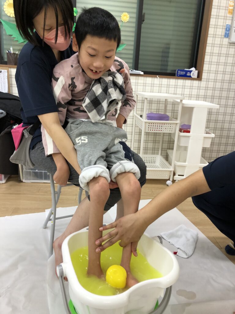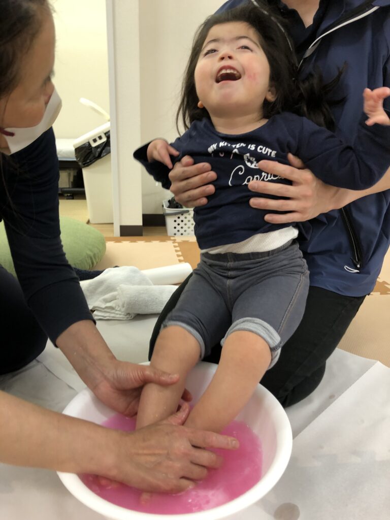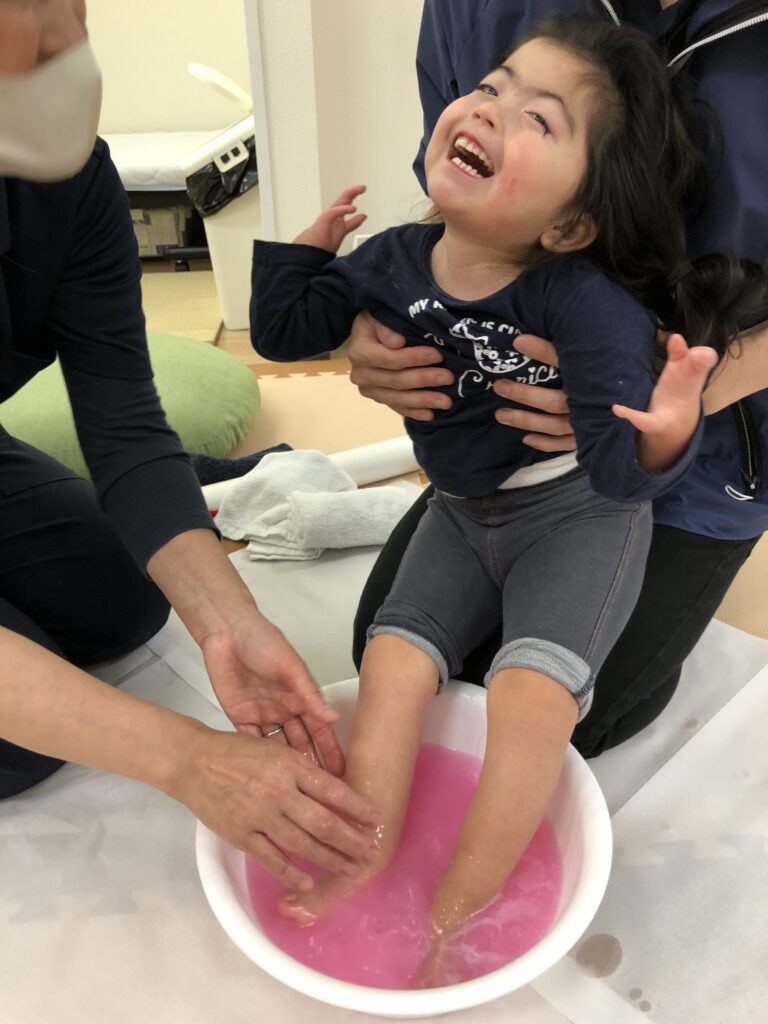 足の裏は第2の心臓と言われています。足のツボは臓器に繋がっており神経を和らげリラックスさせてくれます。大人と同じように自律神経の乱れや身体が冷えるお子さんが増えてきています。足湯をする事で身体を温めて冷えを改善したり自立神経を安定させリラックスさせる効果があるみたいですね。今後も子供達がリラックス出来る時間をつくっていきたいです。