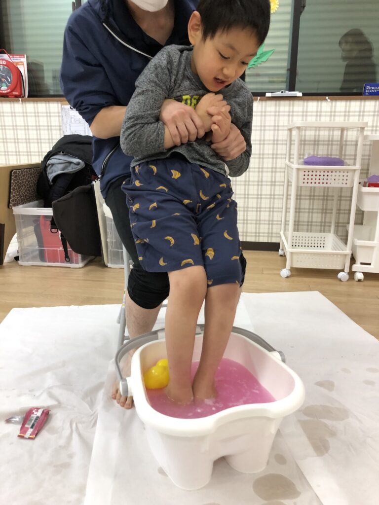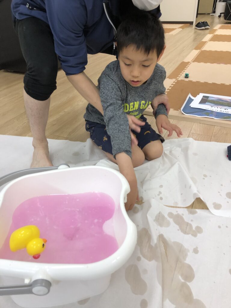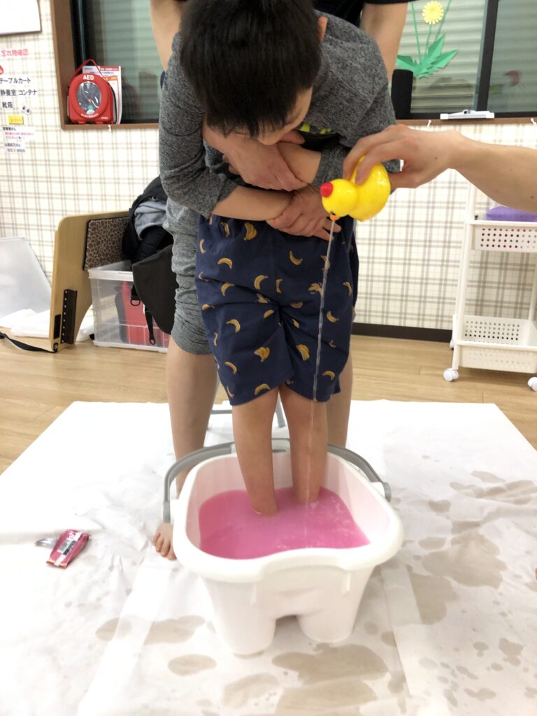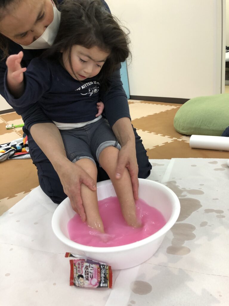 足を入れる前に、入浴剤を目で見て👀鼻で👃匂いを感じて、さらに✋で触れてみたりと様々な経験を味わいました!!