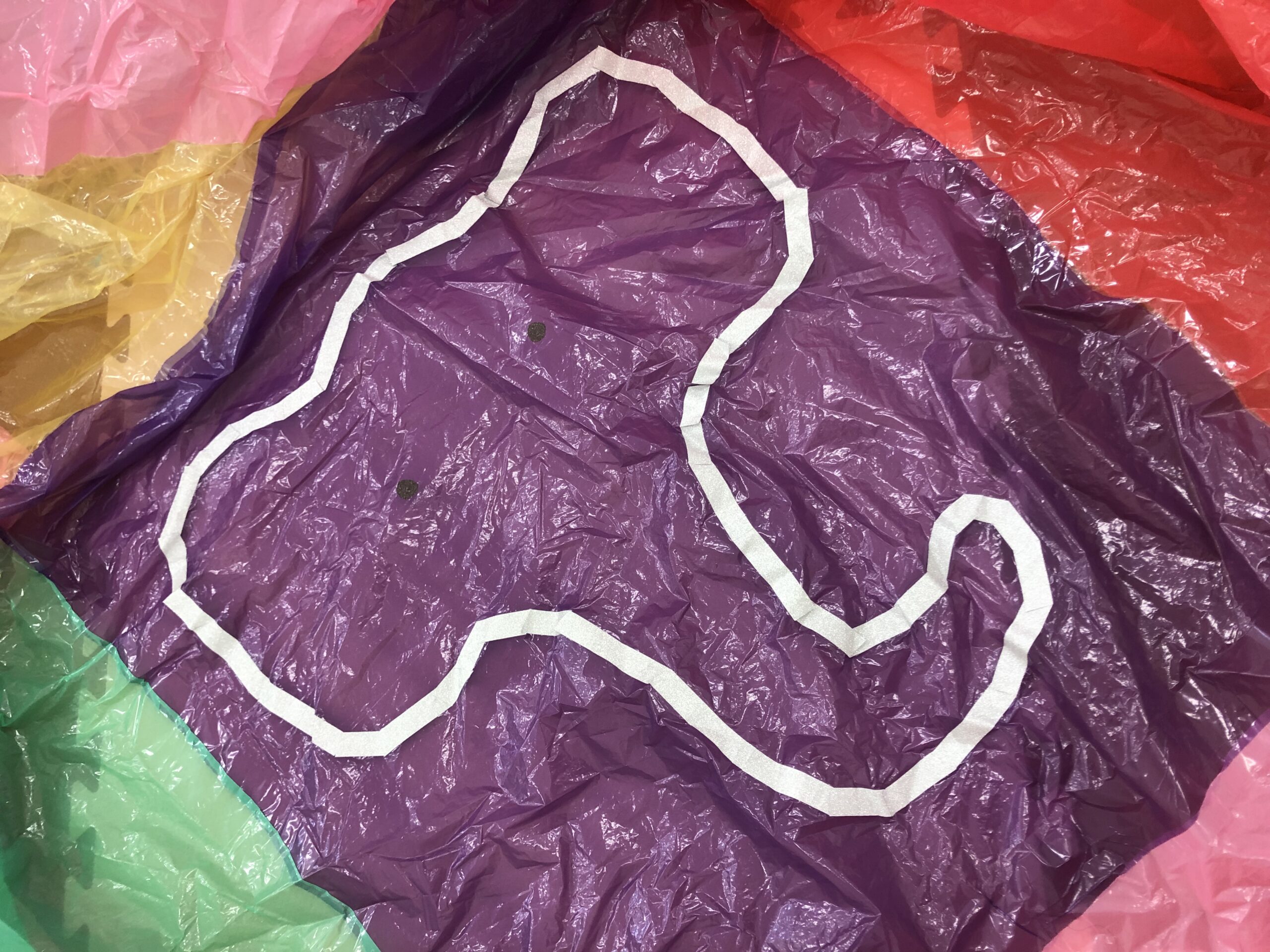 ラシクには、カラー袋を切ってつなげた手作りのパラバルーンがあります!
