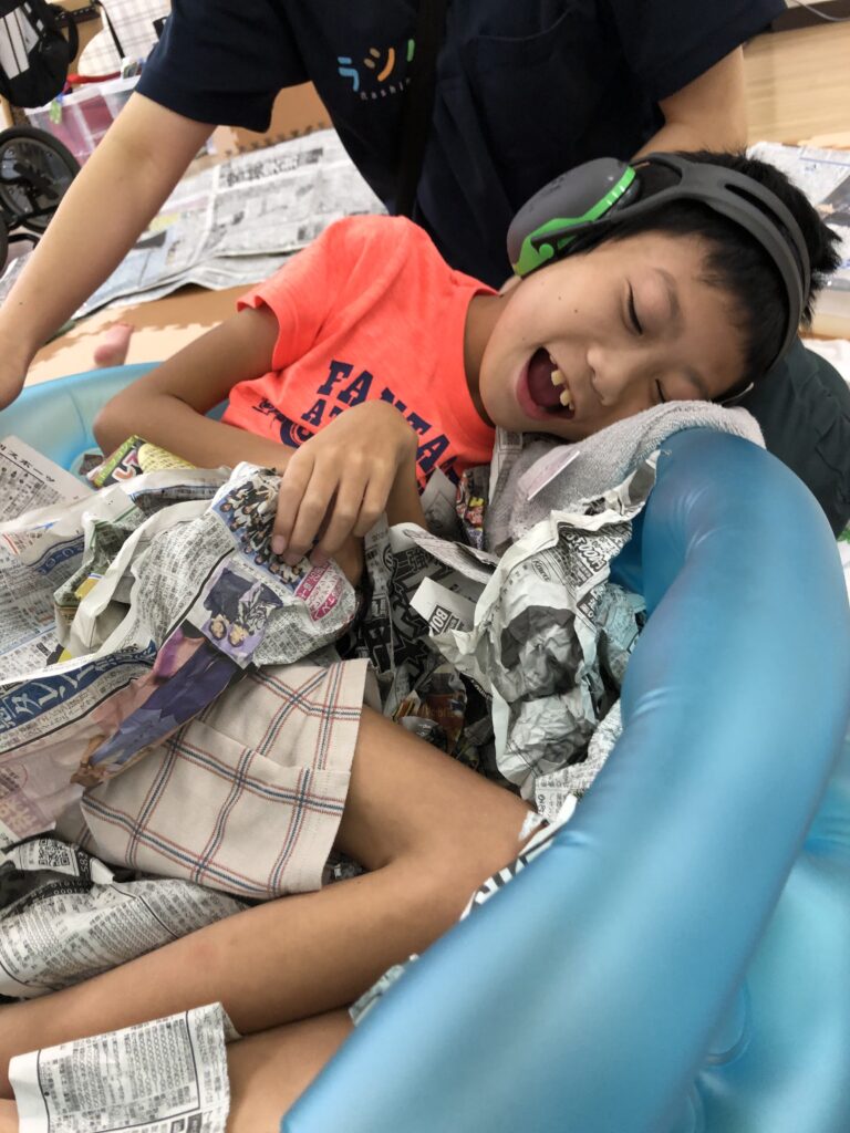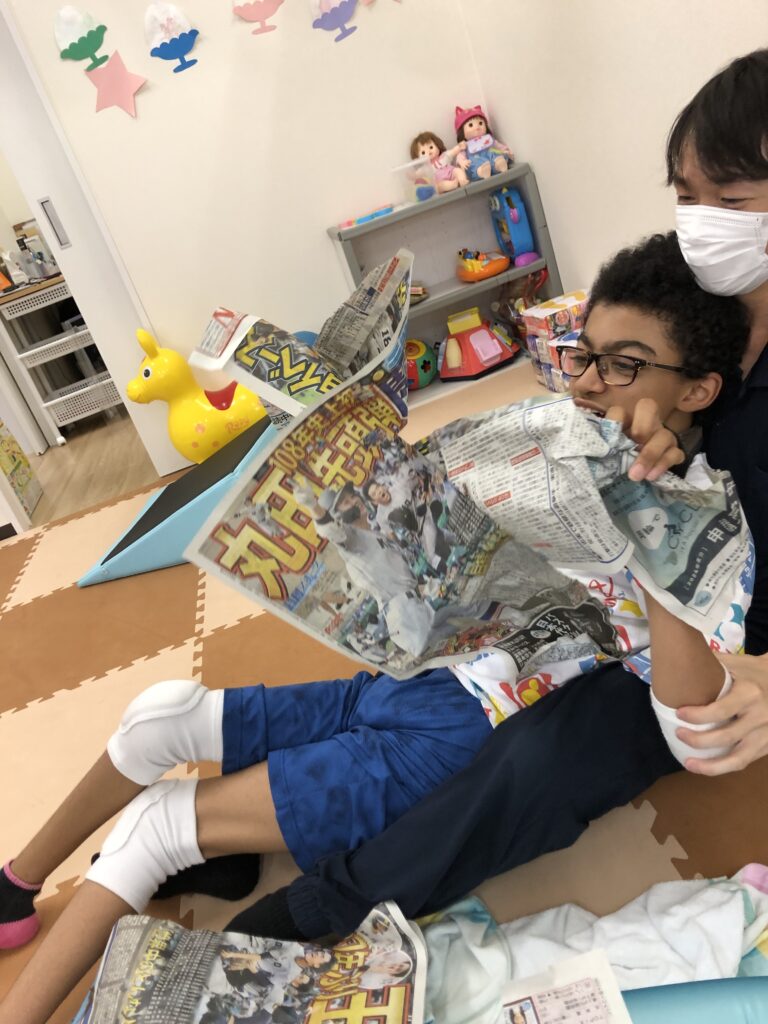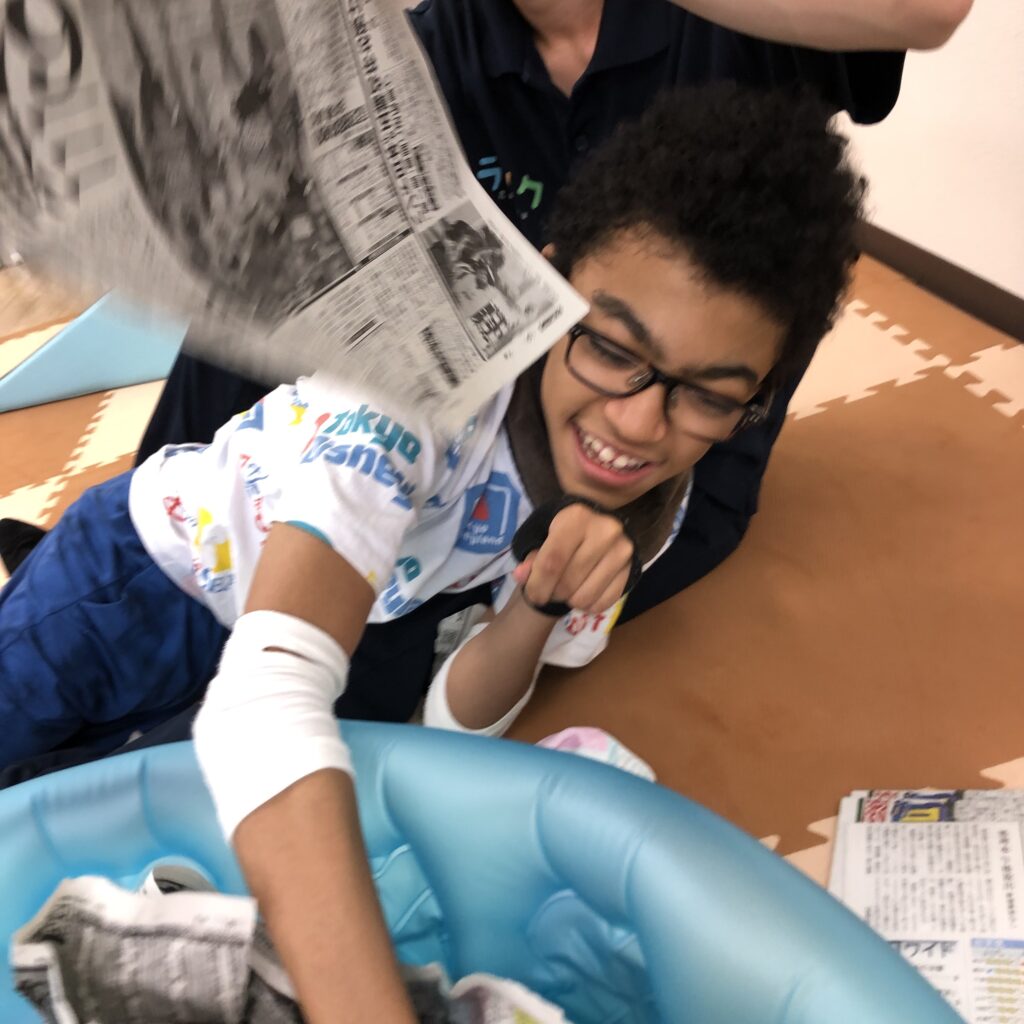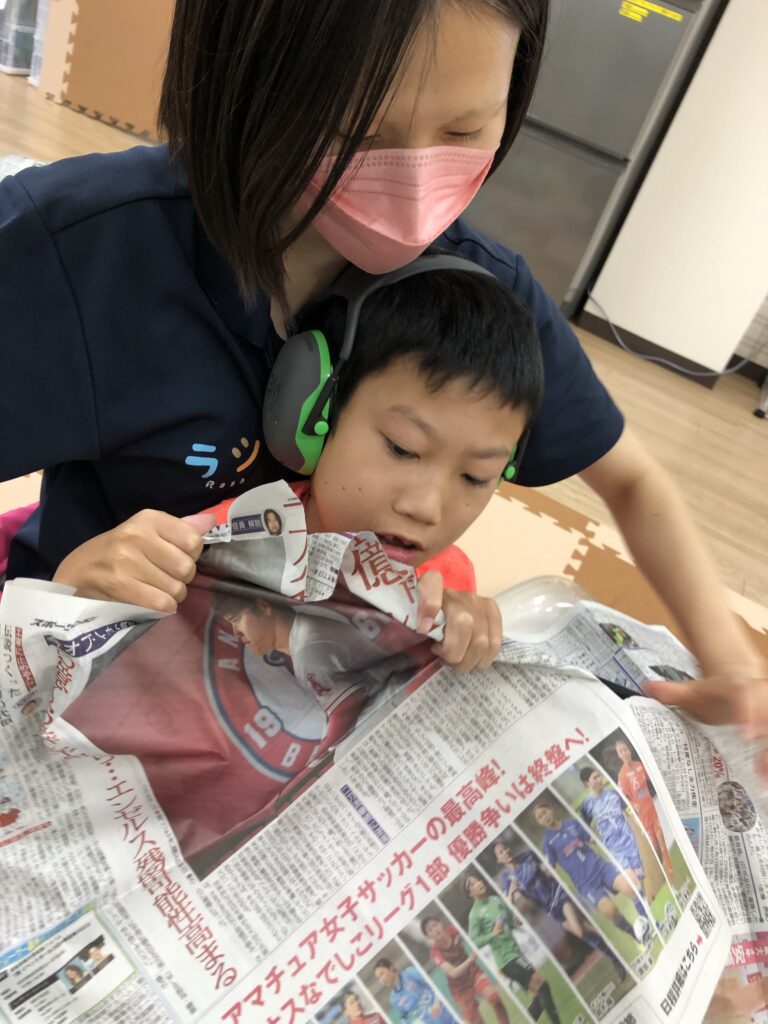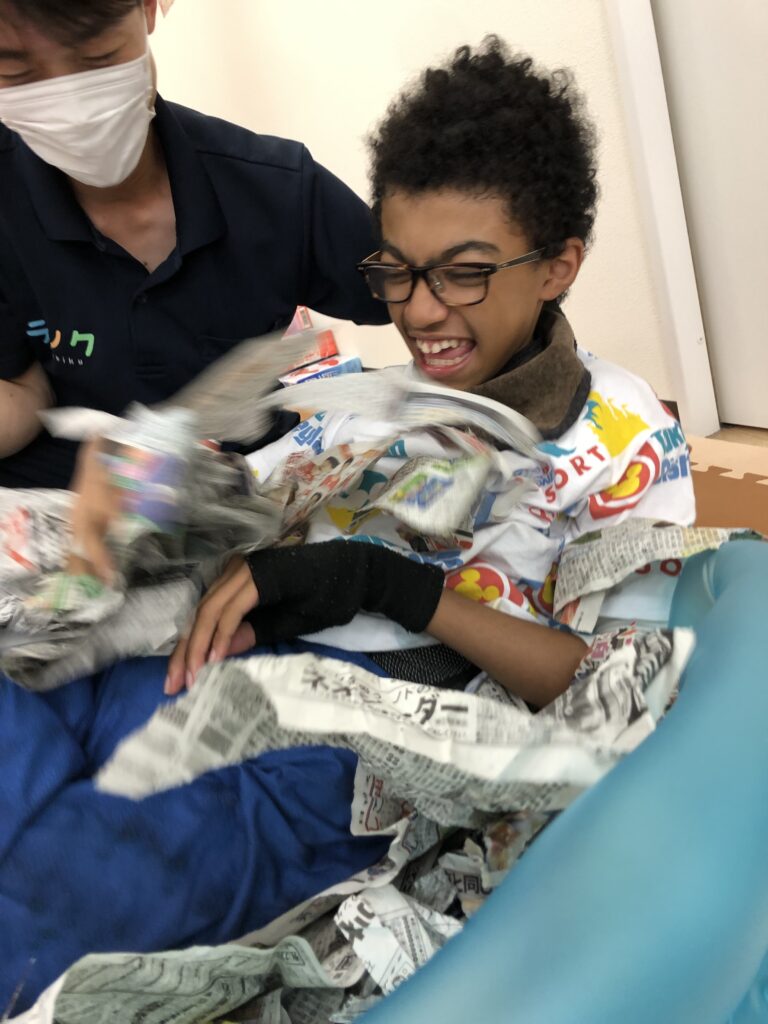 #ラシク #川崎市 #幸区 #鹿島田 #重症心身障害児 #放課後デイ #児童発達支援 #療育 #新聞紙 #感覚統合療法