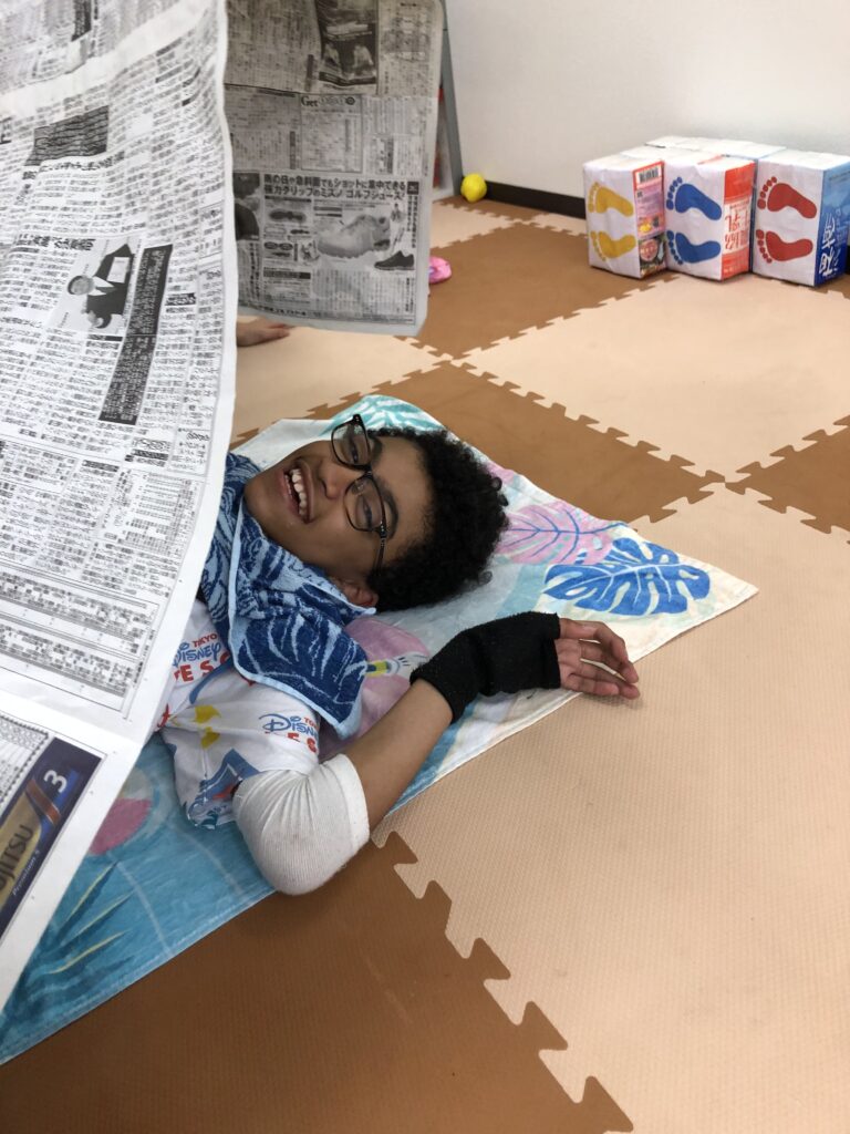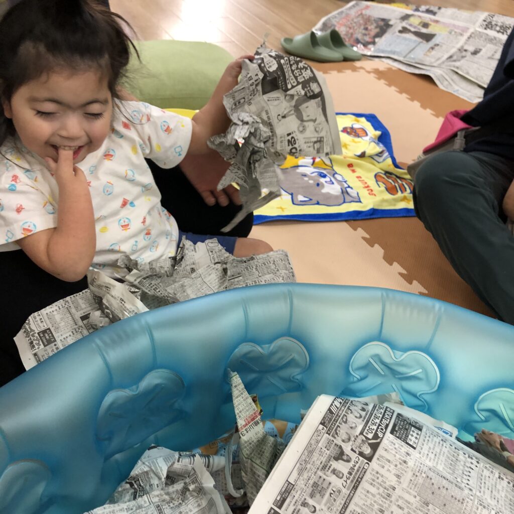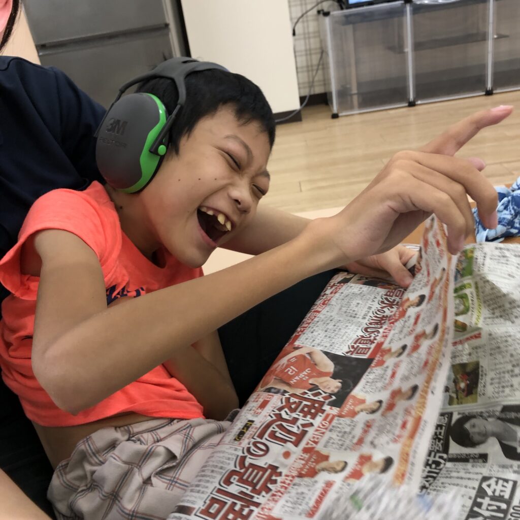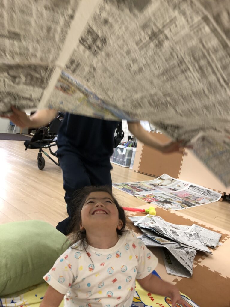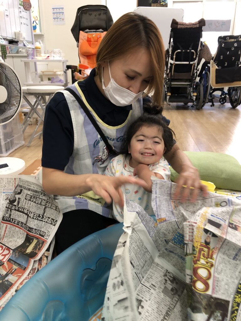 #ラシク #川崎市 #幸区 #鹿島田 #重症心身障害児 #放課後デイ #児童発達支援 #療育 #新聞紙 #感覚統合療法