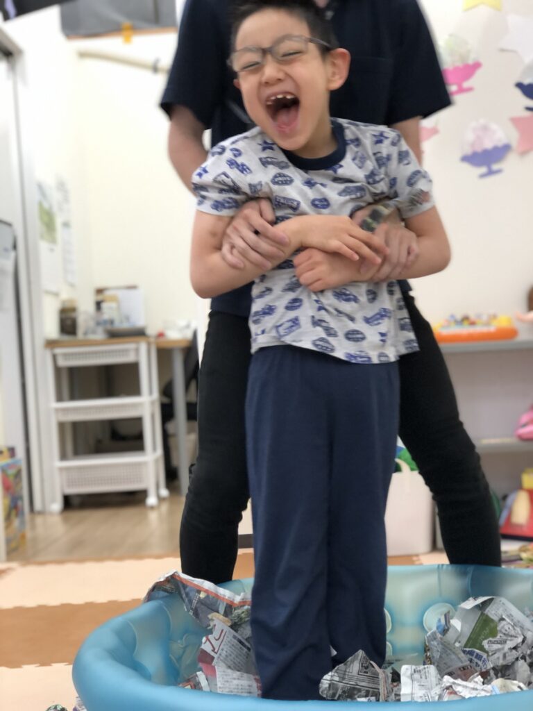 今回の新聞紙遊びの活動は「感覚統合療法(主に発達障害の分野で有名です)」を意識した内容です。