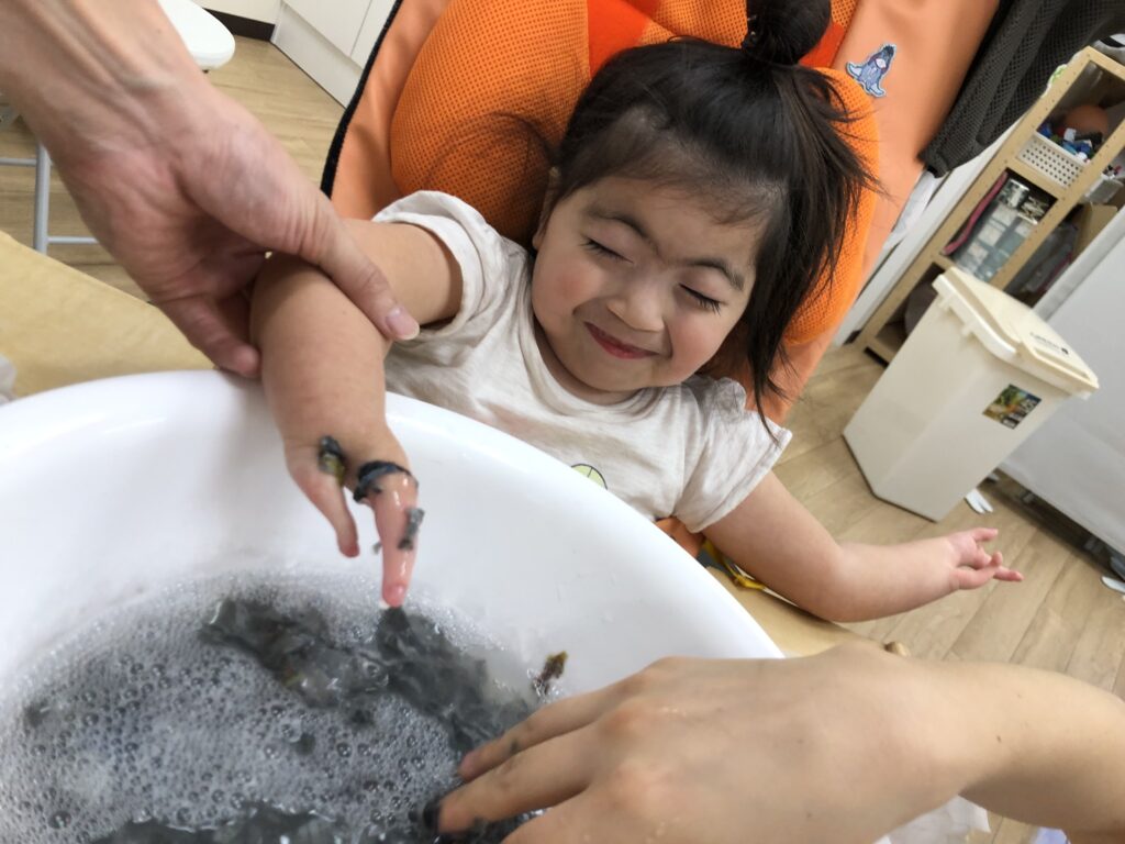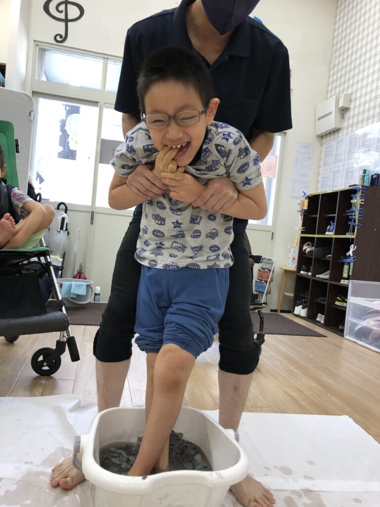 普段、車いすで移動する子どもたちは、興味はあっても手にできないものもたくさんあると思います。触る以外にも、道具を使う経験の少なさから先ほど挙げた「道具感覚」や、室内で過ごす時間が多いことから「温度感覚」、姿勢に変化が少ないことから「前庭覚(平衡感覚)」など、とにかく感覚に対する経験が乏しくなりがちです。