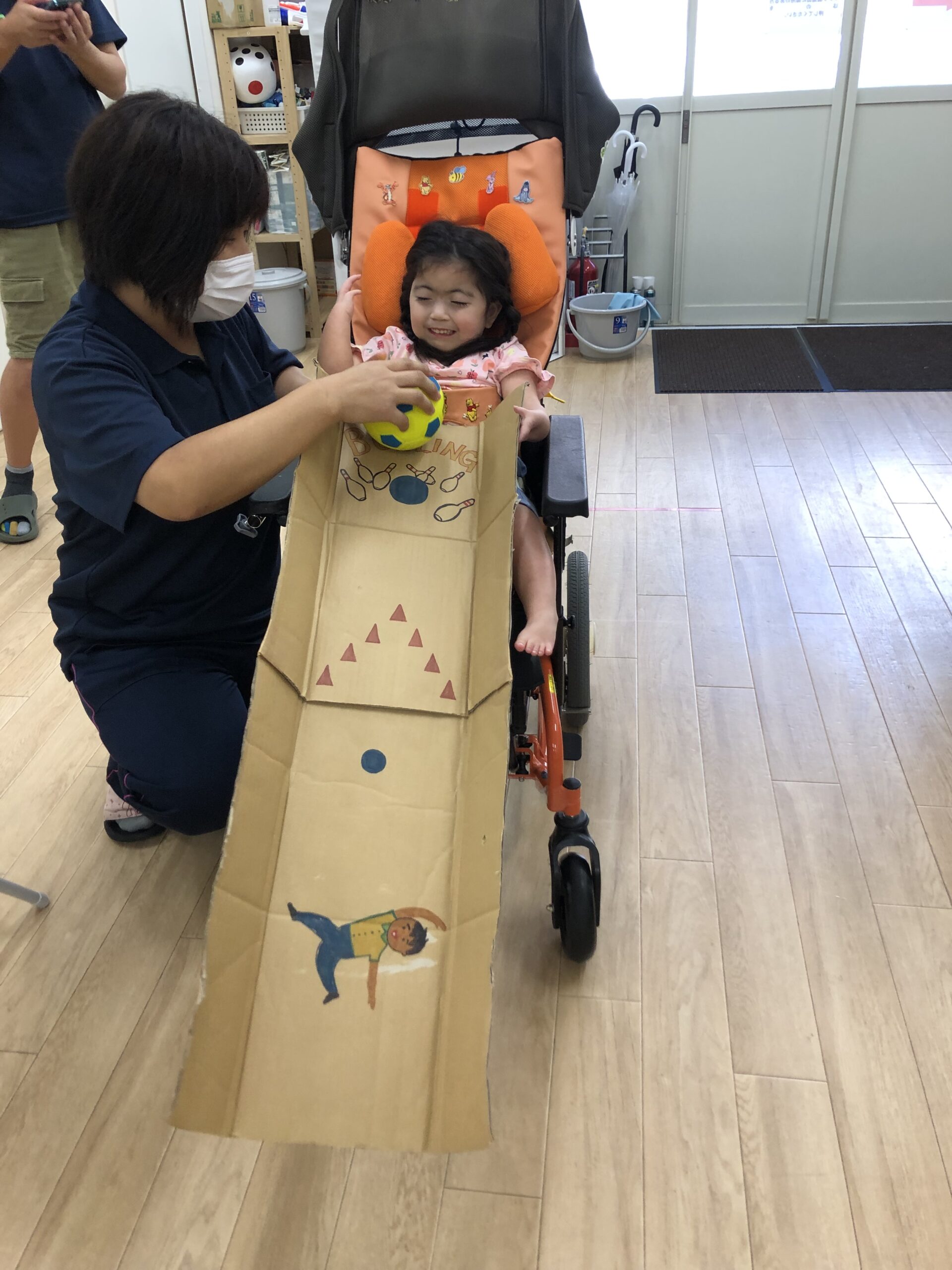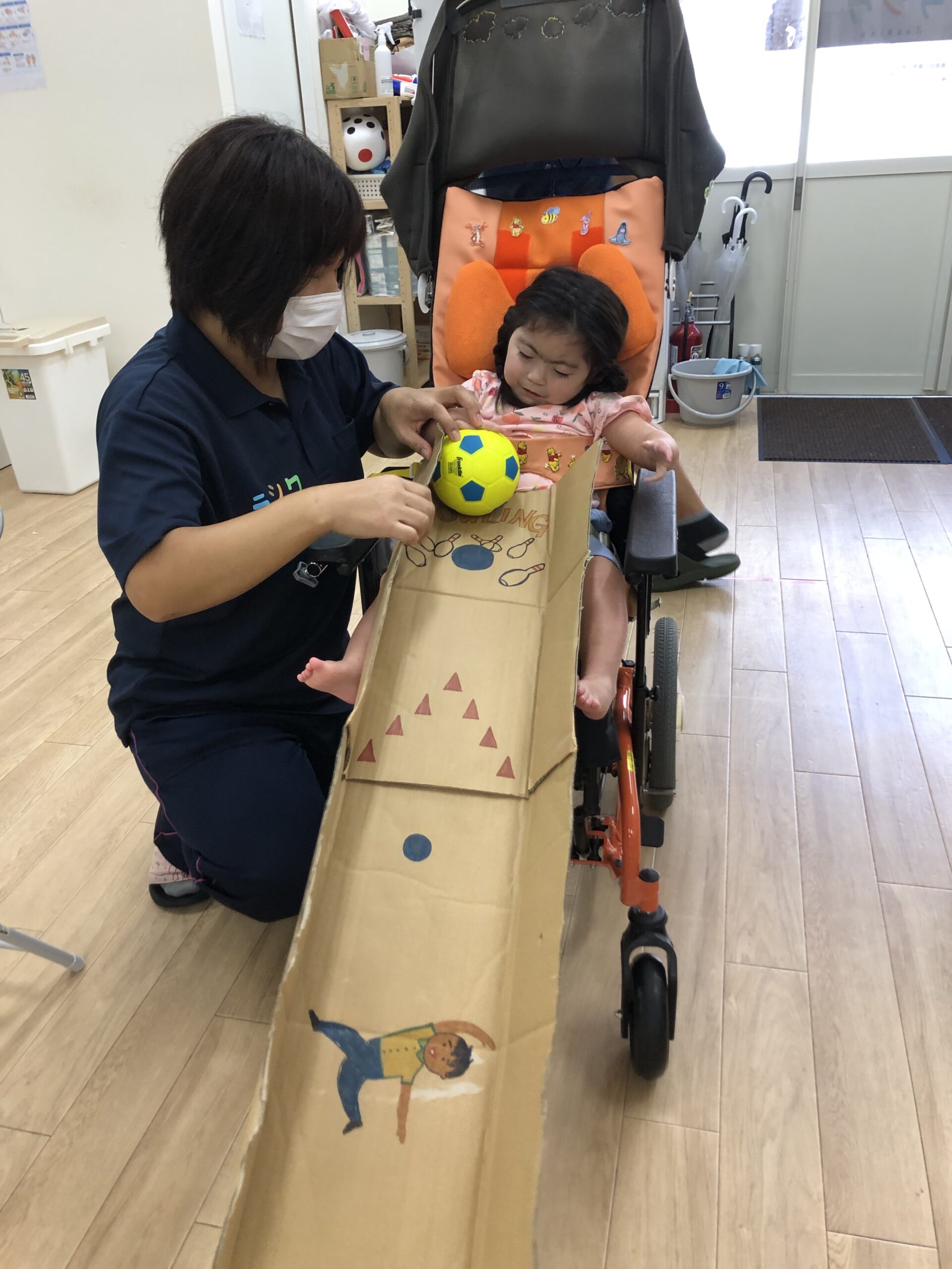 ボールを転がす道は足で押さえて完璧っ!✨